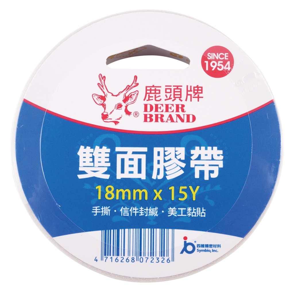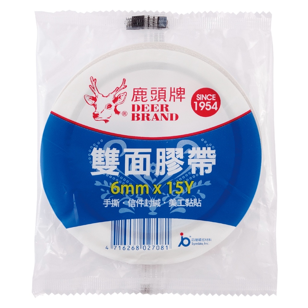 鹿頭牌 大管芯雙面膠帶 6mmx15Y/12mmx15Y/18mmx15Y 萬能雙面膠 強力雙面膠 大管芯膠帶台 黏膠6mmx15Y|12mmx15Y|18mmx15YStrings & TapesOfficepro總務倉庫 旗艦店