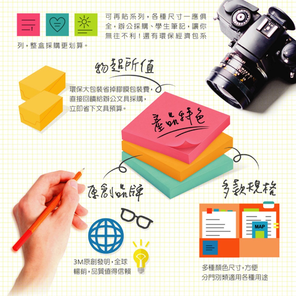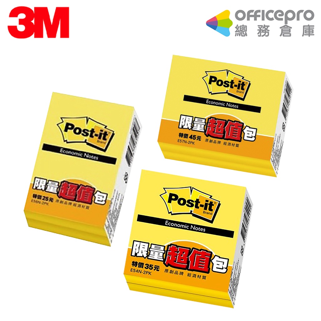 3M 利貼可再貼便條紙超值包 100張x2本/包 E54N-2PK/E56N-2PK/E57N-2PK76x50.8mm/100張x2本/包|7.5×7.5cm/100張x2本/包|75×101.6mm/100張x2本/包Memo & Sticky NotesOfficepro總務倉庫 旗艦店
