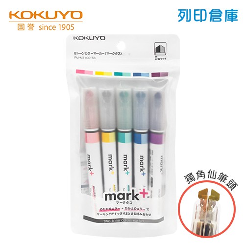 【日本文具】KOKUYO國譽 Mark+ 獨角仙同色系螢光筆 雙頭 水性 5色/現貨藍色|綠色|粉紅色|紫色|黃色|5色組HighlightersOffice24列印倉庫