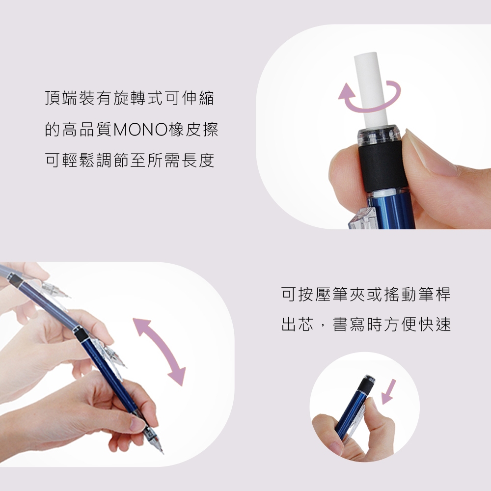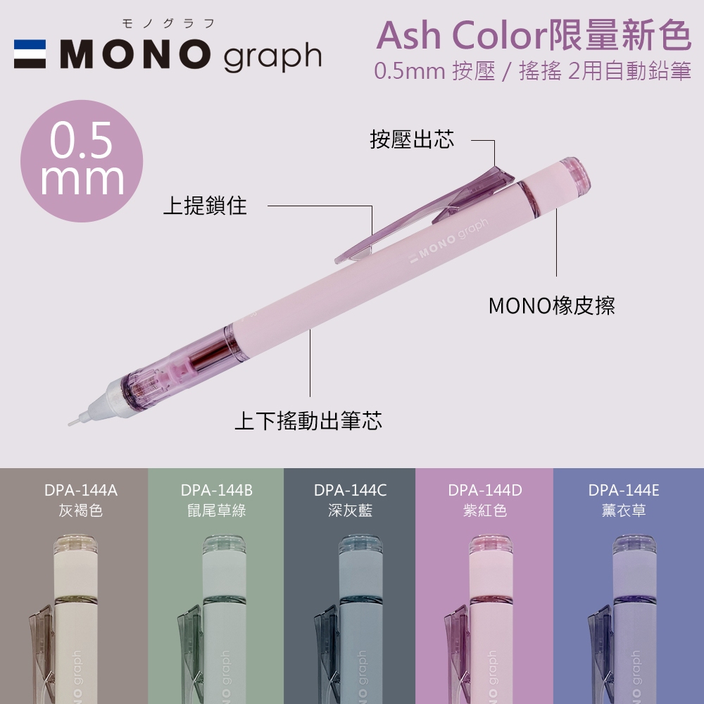 【日本文具】TOMBOW蜻蜓牌 MONO Graph DPA-144D Ash Color限量新色 0.5mm 按壓/搖按壓搖搖兩用筆|UNI 2B 抗汙自動鉛筆芯|UNI 2B筆芯+ MONO小橡皮擦組PencilsOffice24列印倉庫