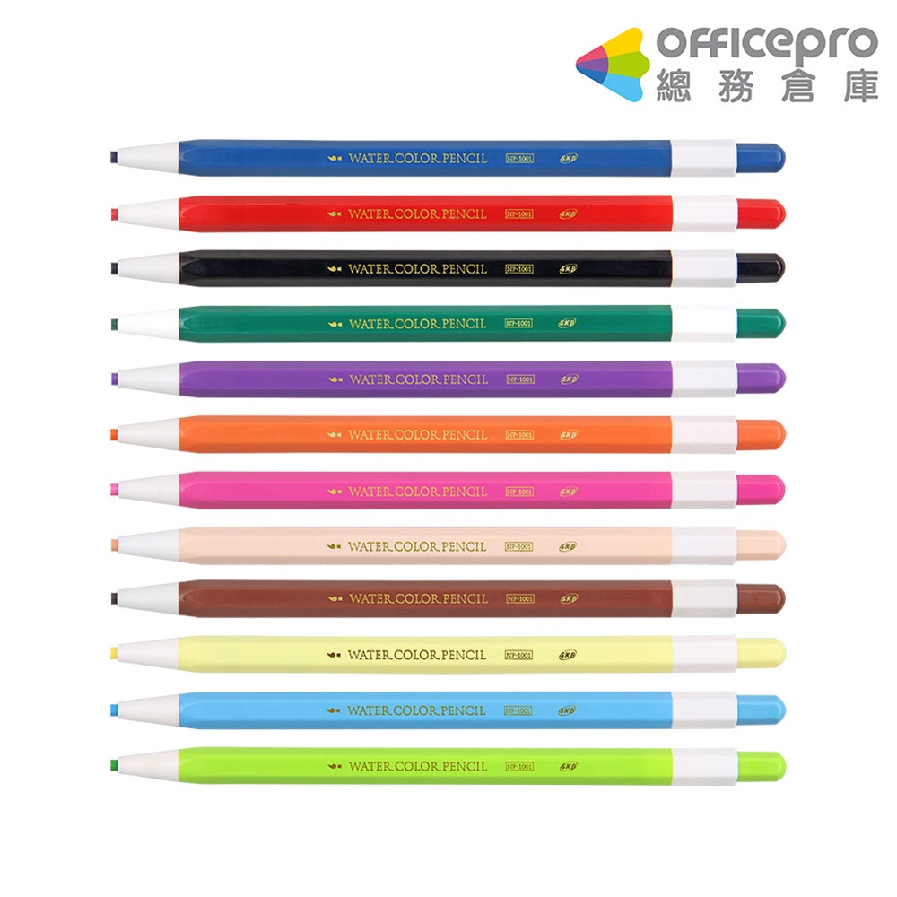 SKB 按壓水溶性色鉛筆 NP-1001 藍色 紅色 黑色 綠色 紫色 柑色 粉色 肉色 咖啡 黃色 淺藍 淺綠藍色|紅色|粉色|咖啡|淺藍|淺綠|黑色|綠色|紫色|柑色|肉色|黃色Color PencilsOfficepro總務倉庫 旗艦店