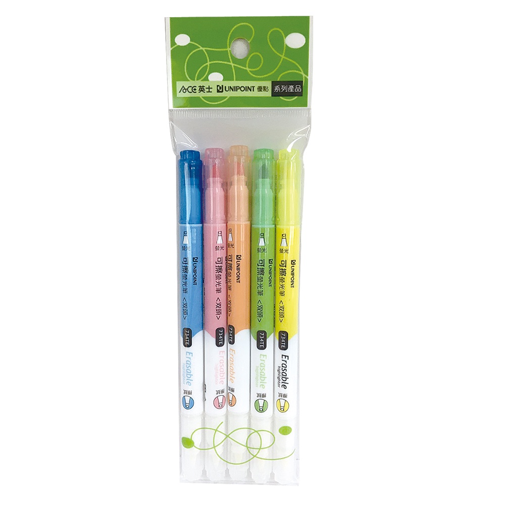 優點UNIPOINT 可擦拭雙頭螢光筆 黃 5色/袋 鮮明多色螢光筆 重點筆記筆 學校辦公室文具734TE-YL/黃色/支|734TE-5P/5色/袋HighlightersOfficepro總務倉庫 旗艦店