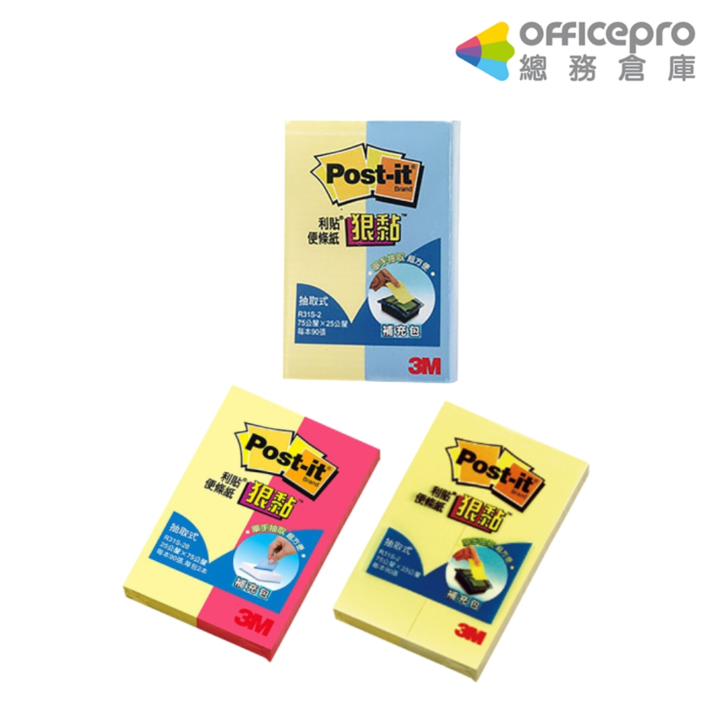3M Post-it 利貼狠黏抽取式便條紙補充包/R31S/25x75mm/90張x2本|Officepro總務倉庫R31S-28 黃+粉色|R31S-2 黃色|R31S-27 黃+藍色Memo & Sticky NotesOfficepro總務倉庫 旗艦店