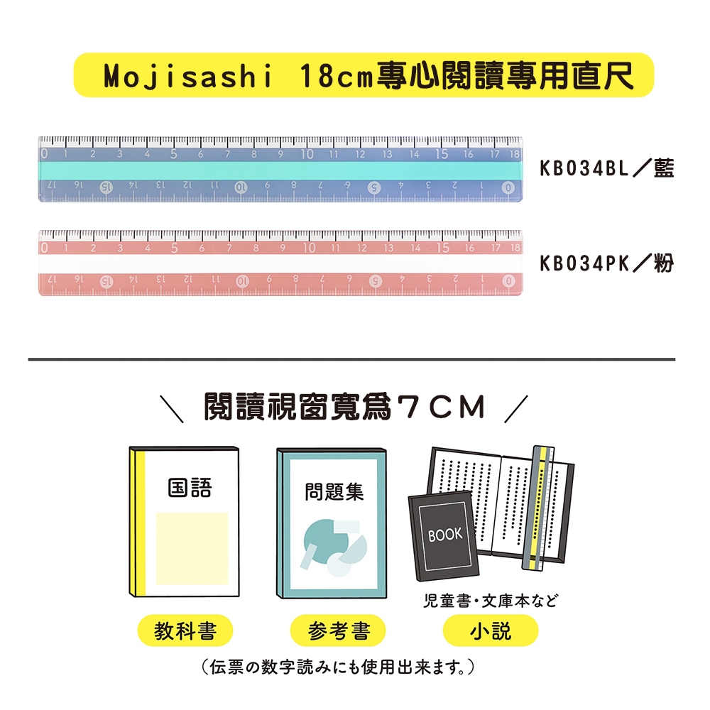 【日本文具】KUTSUWA KB034 Mojisashi 18cm專心閱讀專用直尺-藍色 / 粉色 – 現貨藍色|粉色Rulers, Protractors & StencilsOffice24列印倉庫