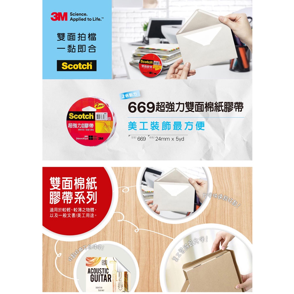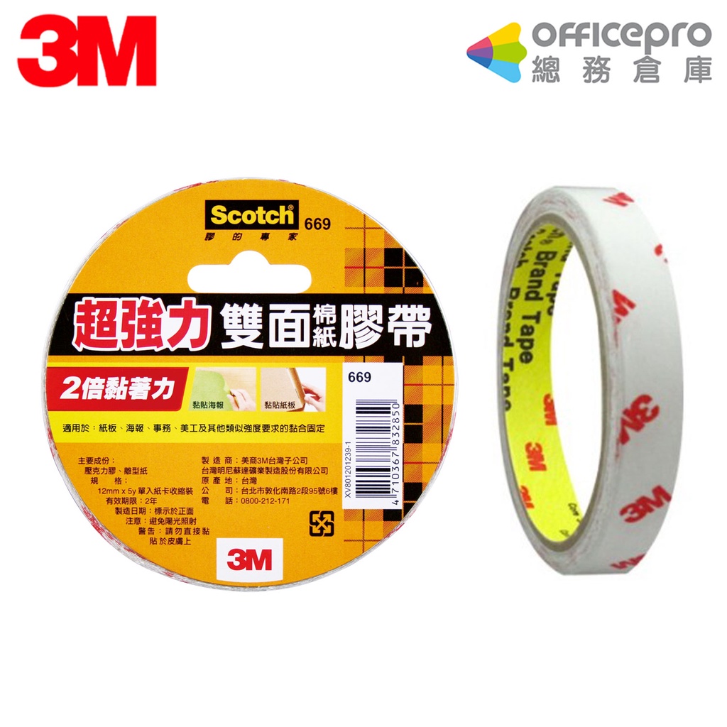 3M 超強力雙面棉紙膠帶 669 雙面膠帶 雙面膠 無痕貼 不殘膠 萬用膠透明膠帶 黏貼裝訂用品24mmx5Y|12mmx5Y|18mmx5YStrings & TapesOfficepro總務倉庫 旗艦店
