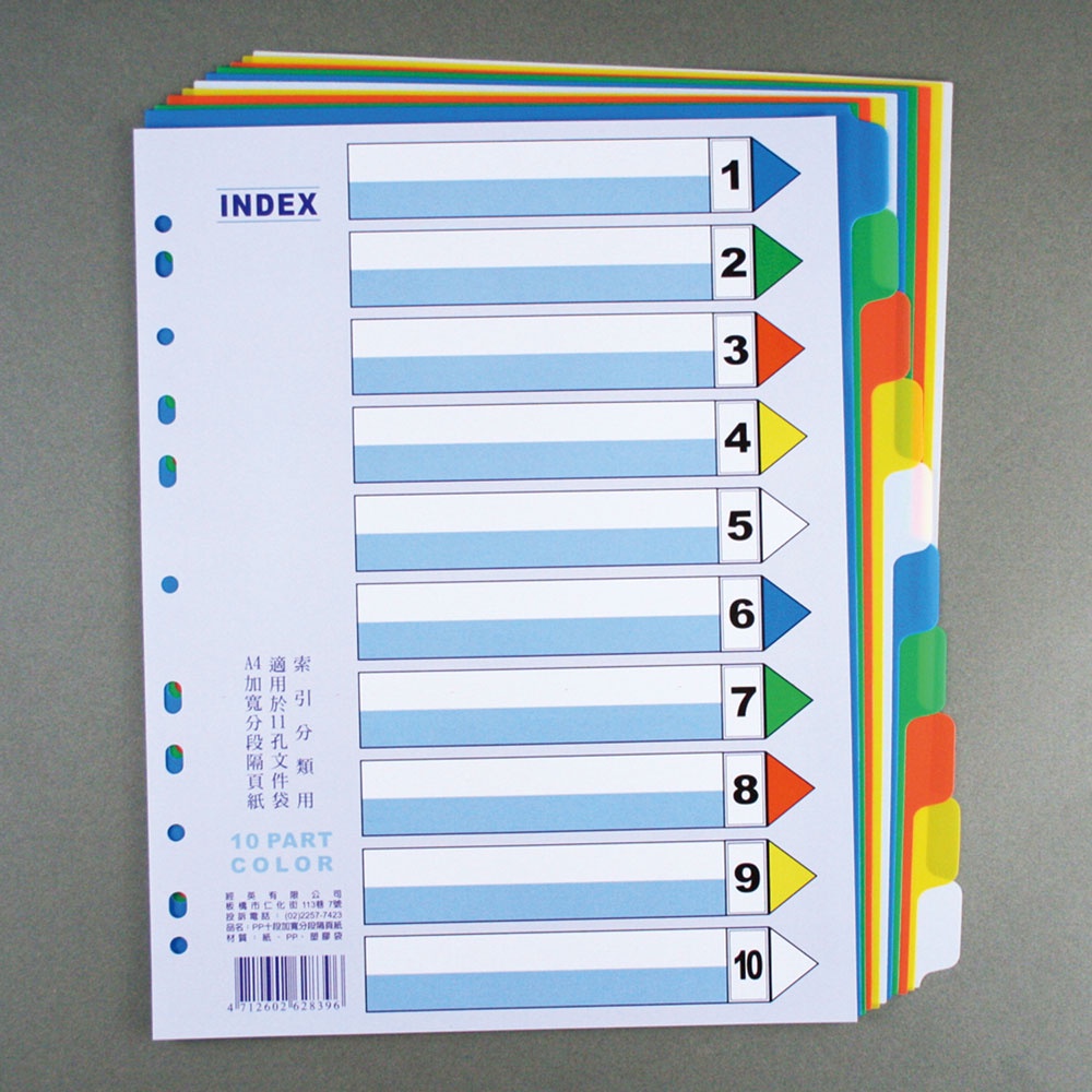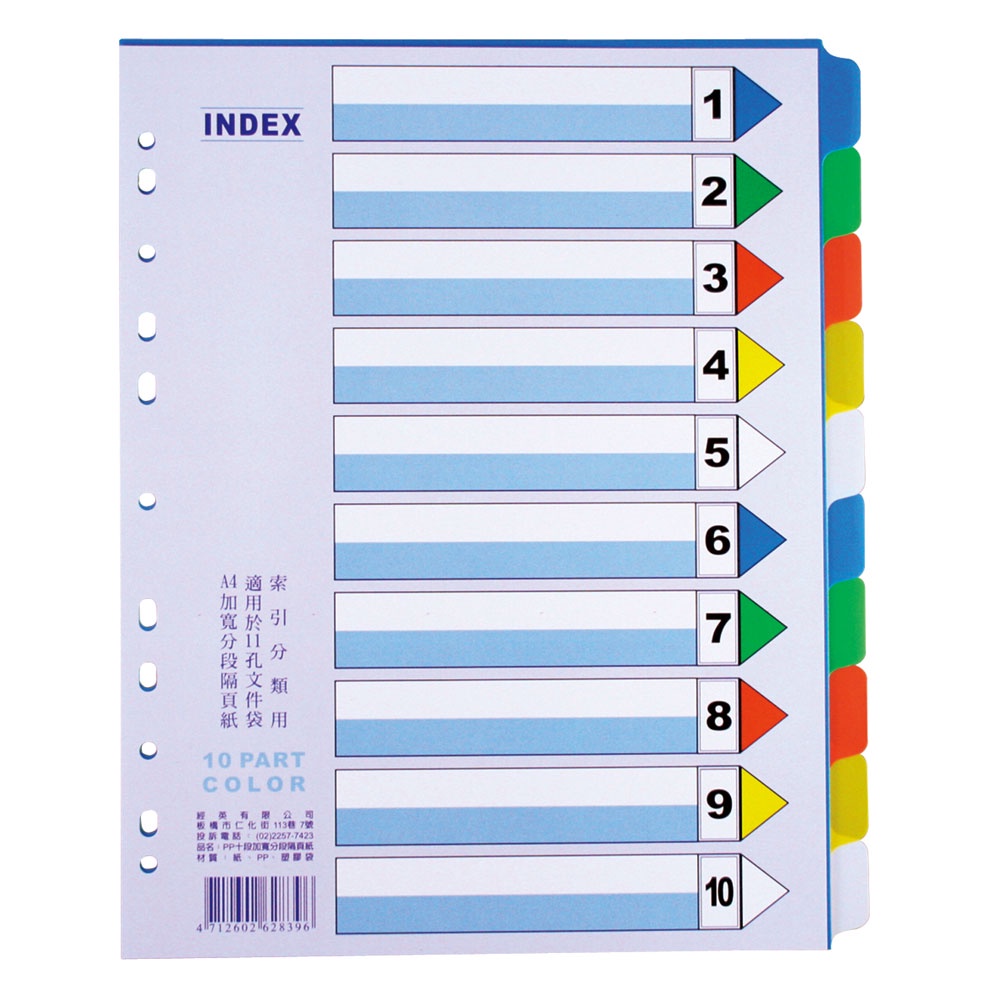 全勝CHUNG SENG 11孔 10段 PP隔頁紙 加寬PP隔頁紙 分隔紙 資料分類筆試本 PP資料夾 索引頁PP隔頁紙 10張/包|加寬PP隔頁紙 10張/包Loose LeafOfficepro總務倉庫 旗艦店