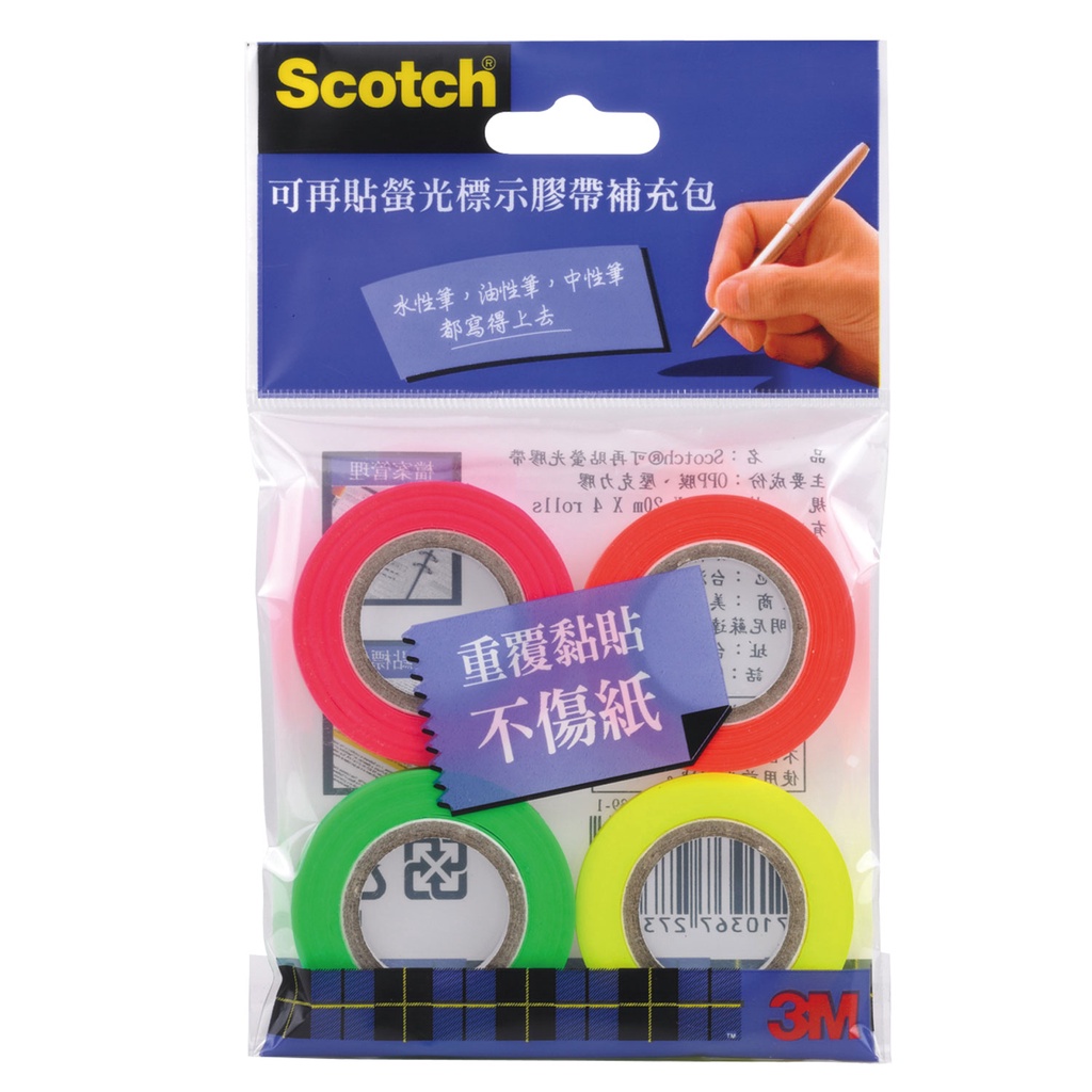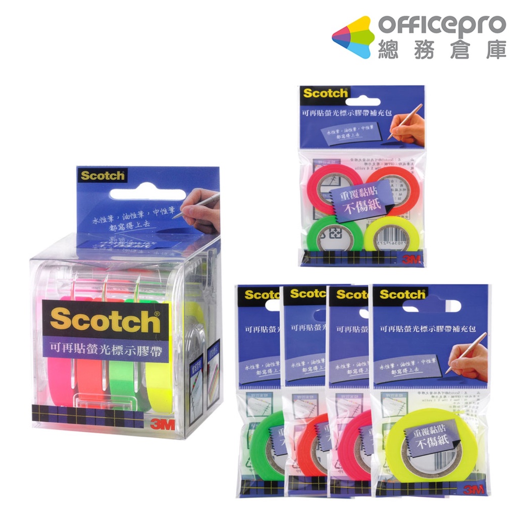 3M Scotch可再貼螢光活貼膠帶/補充包|9mmx20M 螢光指示標籤 重點標籤 多色標籤貼 可書寫標籤紙可再貼螢光活貼膠帶/4色|可再貼螢光活貼膠帶補充包/綠|可再貼螢光活貼膠帶補充包/橘|可再貼螢光活貼膠帶補充包/紅|可再貼螢光活貼膠帶補充包/黃|可再貼螢光活貼膠帶補充包 /4色Labels & StickersOfficepro總務倉庫 旗艦店