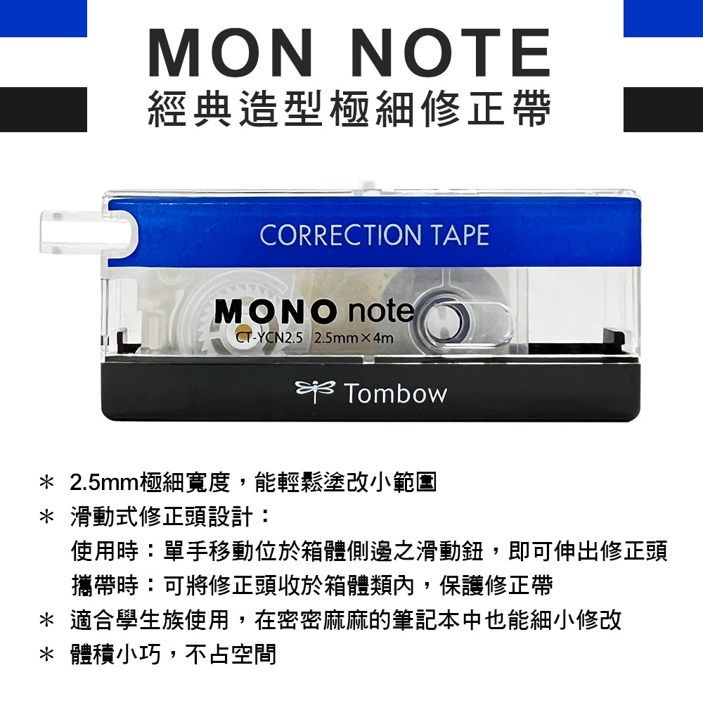 【日本文具】TOMBOW蜻蜓牌MONO note CTYCN2.5 2.5mm x 4m經典造型極細修正帶 立可帶/現貨