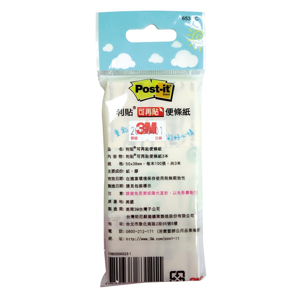 3M 利貼可再貼便條紙 653-3C 黃綠紅 50x38mm 3本/包 重複貼 便條紙 留言紙 MEMO紙 環保便條紙3M 利貼可再貼便條紙 653-3C 黃綠紅 50x38mm 3本/包 重複貼 便條紙 留言紙 MEMO紙 環保便條紙Memo & Sticky NotesOfficepro總務倉庫 旗艦店