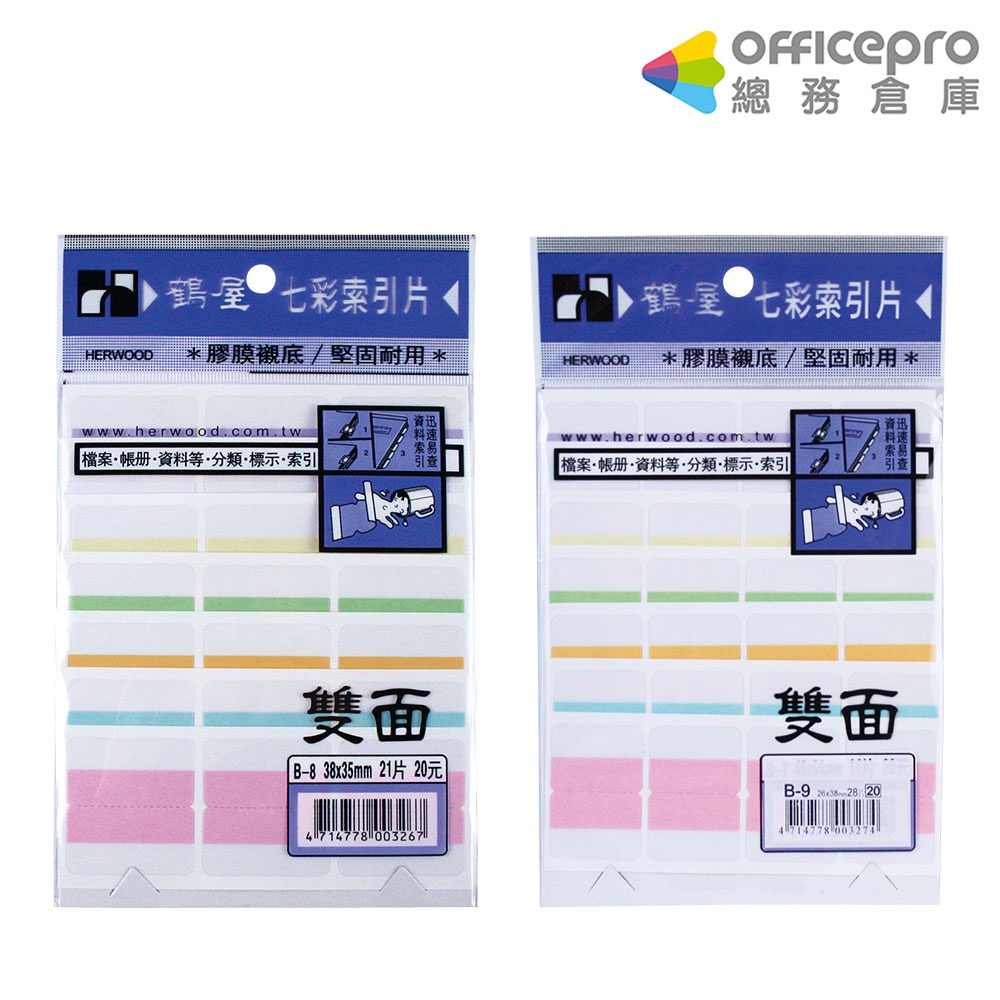 鶴屋 索引片雙面七彩B-8 21片/包 B-9 28片/包 重點標籤貼 七彩標籤貼 索引貼 雙面索引貼 筆記重點貼B-9 寬38x長35mm 21片/包|B-8 寬38x長26mm 28片/包Labels & StickersOfficepro總務倉庫 旗艦店