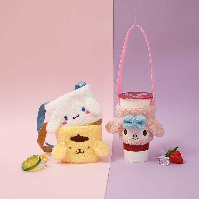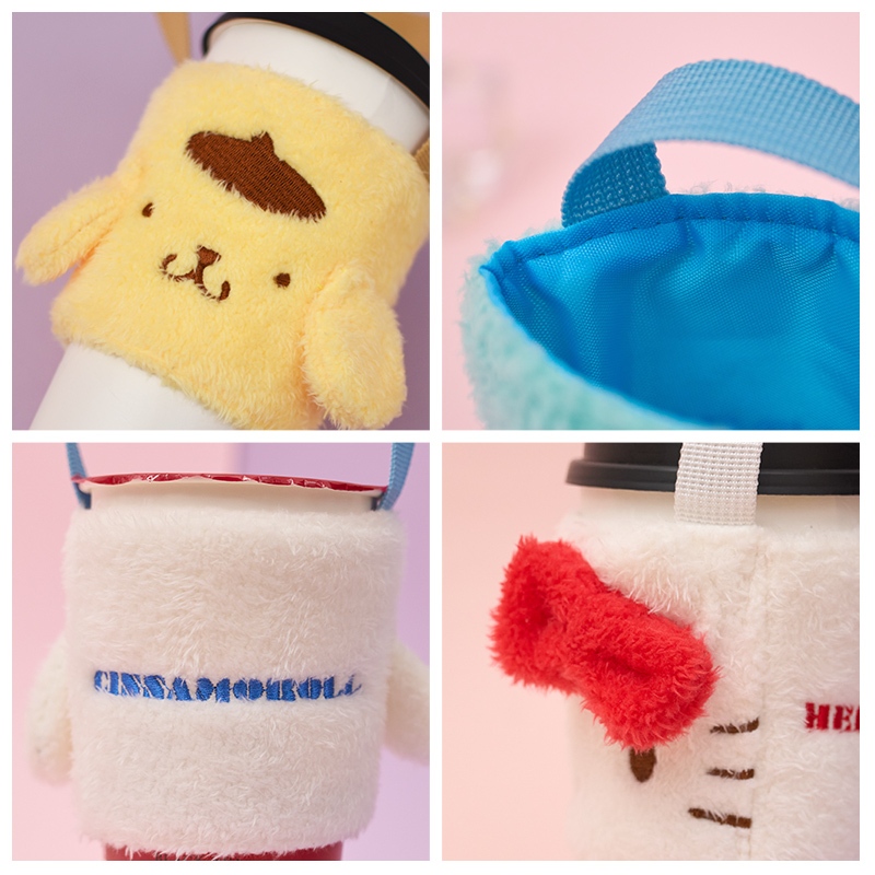 三麗鷗|絨毛飲料杯套 大耳狗 人魚漢頓 凱蒂貓 飲料袋 杯套 環保 CA956酷洛米|美樂蒂|帕恰狗|布丁狗|大耳狗|人魚漢頓|KITTYLanyards & Name TagsRFUNSHOP旗艦店