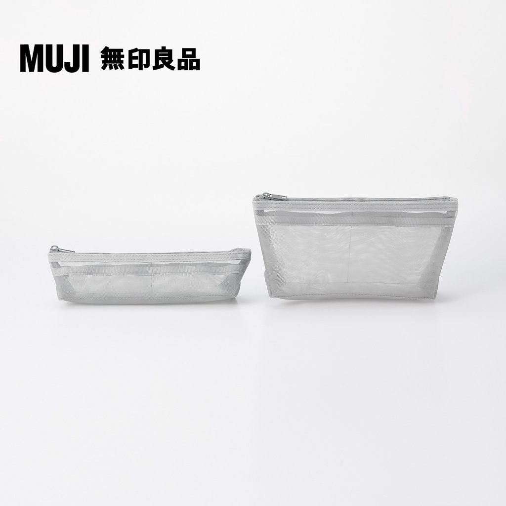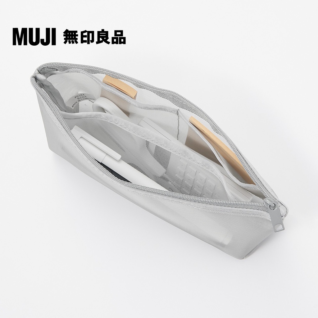 【MUJI 無印良品】尼龍網眼筆袋/船型/灰.約17x10x5cm