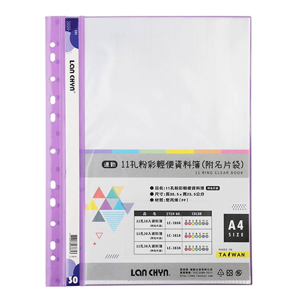連勤LAN CHYN 11孔粉彩資料簿/附名片袋/30入/LC-383A/紫/黃/藍/綠/橘|Officepro總務倉物紫|黃|藍|綠|橘Folders, Paper Organizers & AccessoriesOfficepro總務倉庫 旗艦店