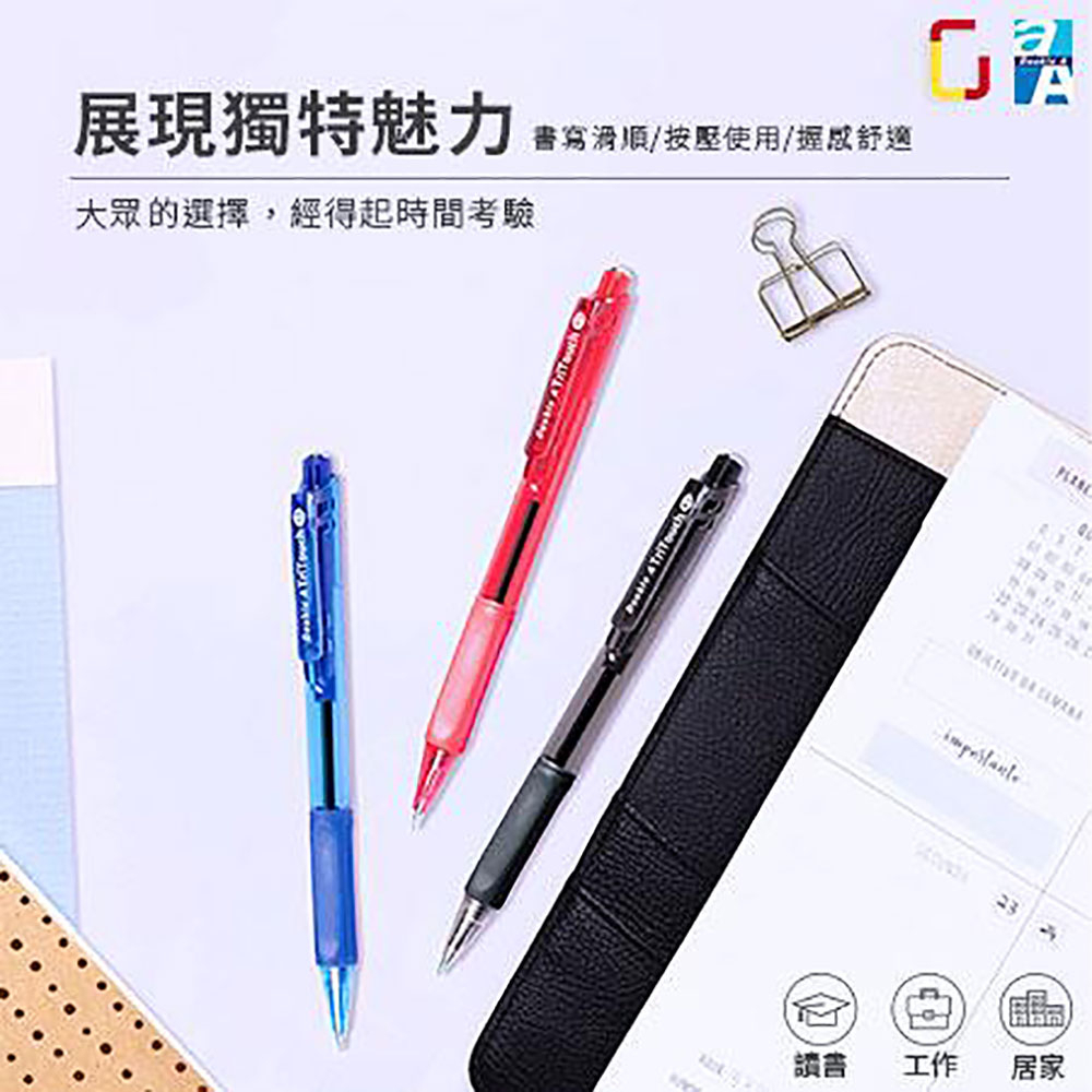 Double A按壓式原子筆/DABP21001/黑/藍/紅 0.5mm|Officepro總務倉庫藍|紅|黑Pens & InksOfficepro總務倉庫 旗艦店