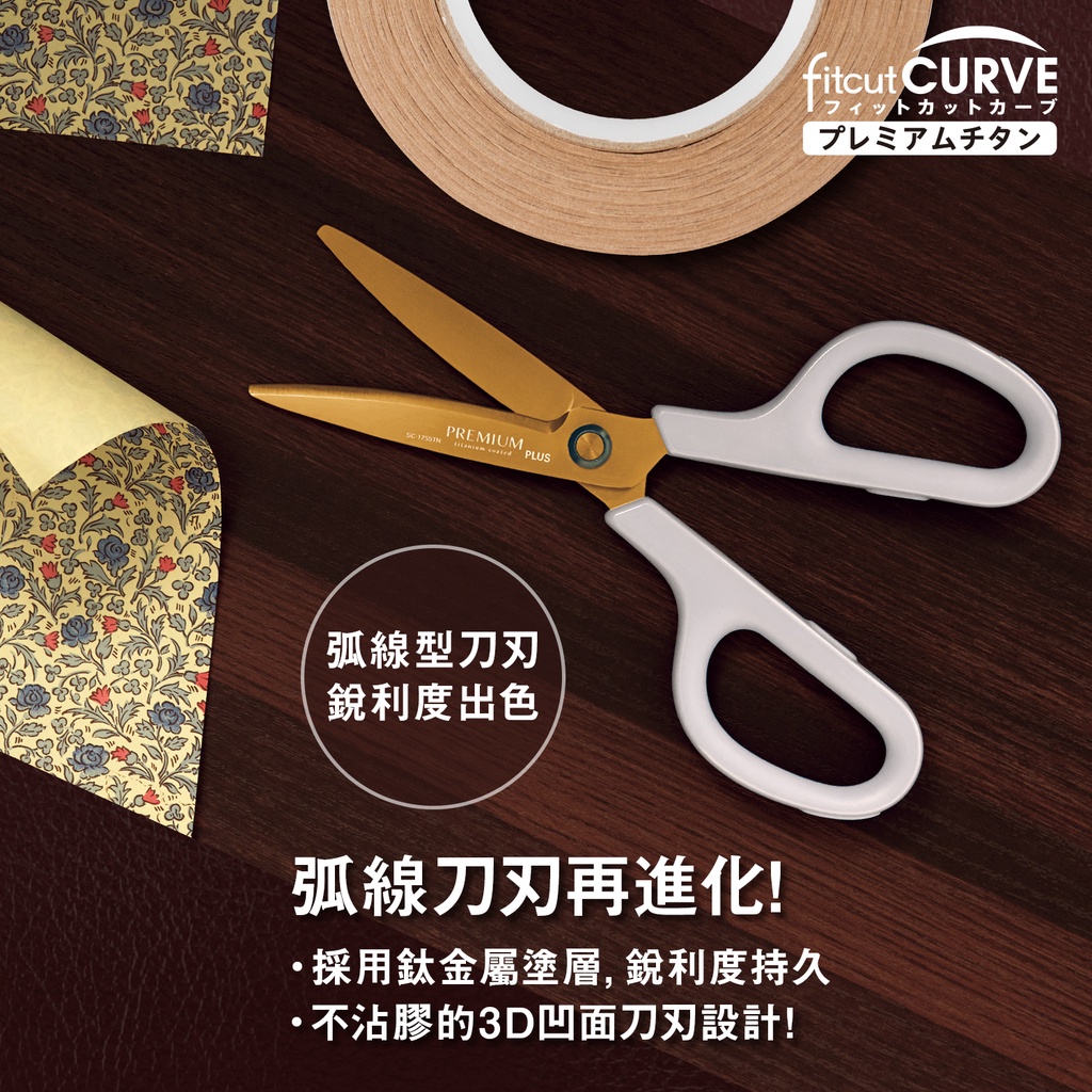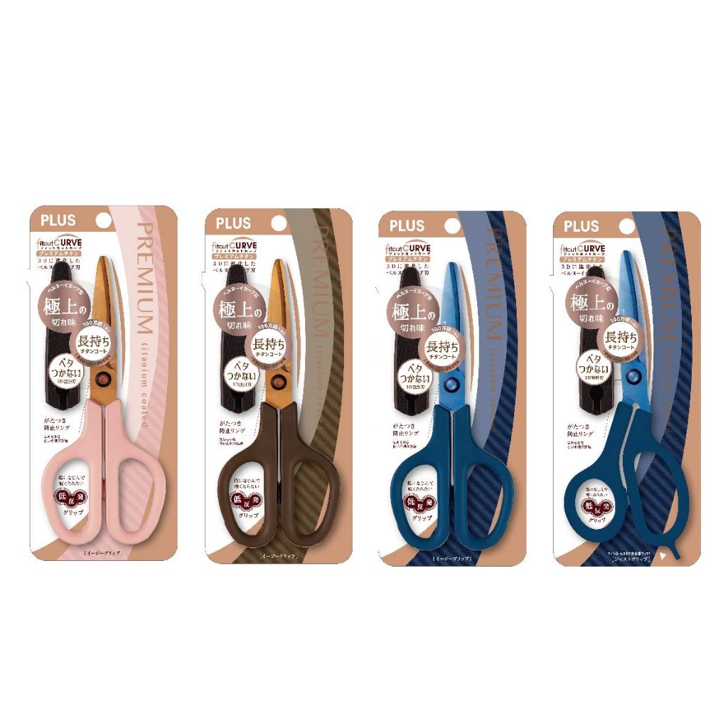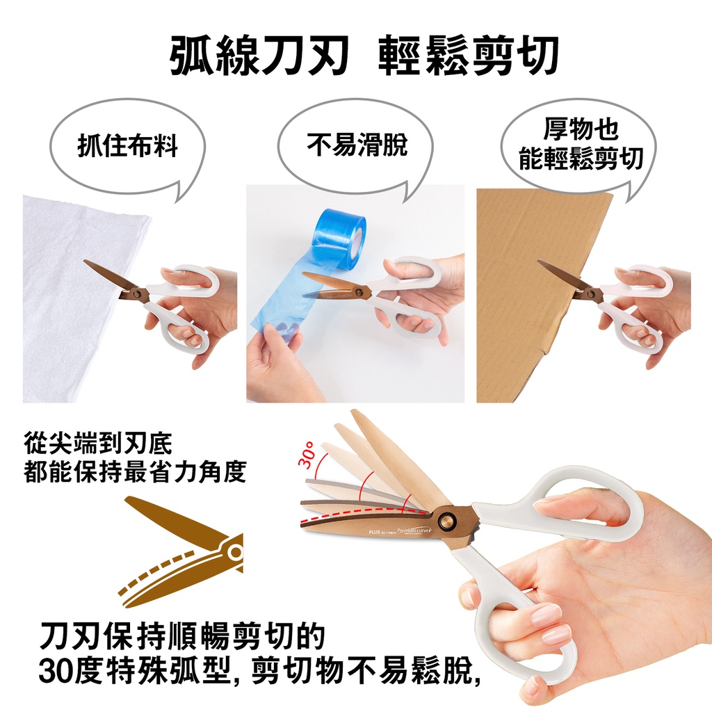 【PLUS】30度弧線剪刀(鈦金屬+3D凹面不沾膠))粉|深藍|深褐|深藍(不對稱)ScissorsPLUS普樂士文具官方旗艦店