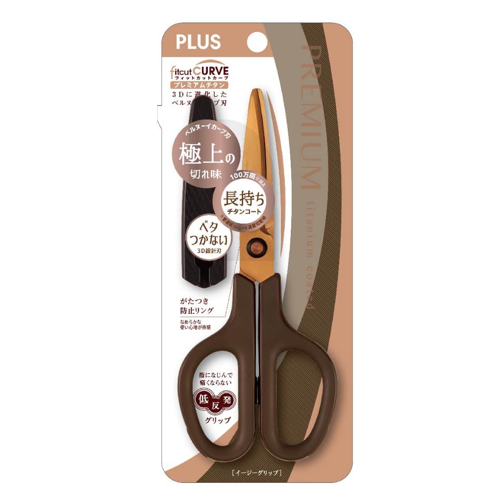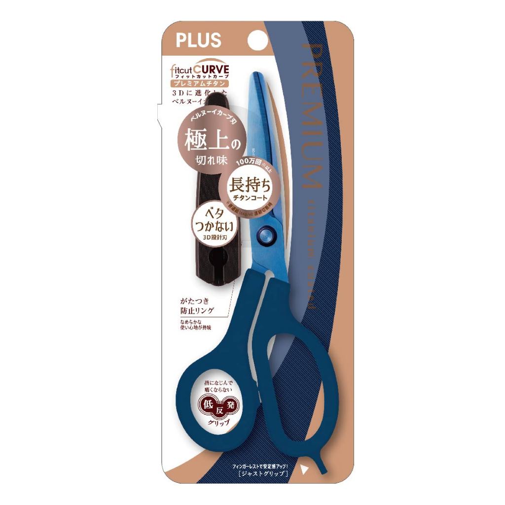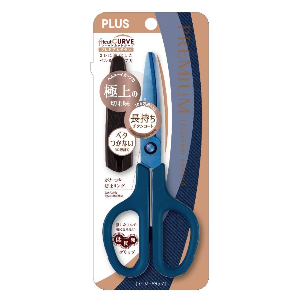 【PLUS】30度弧線剪刀(鈦金屬+3D凹面不沾膠))粉|深藍|深褐|深藍(不對稱)ScissorsPLUS普樂士文具官方旗艦店