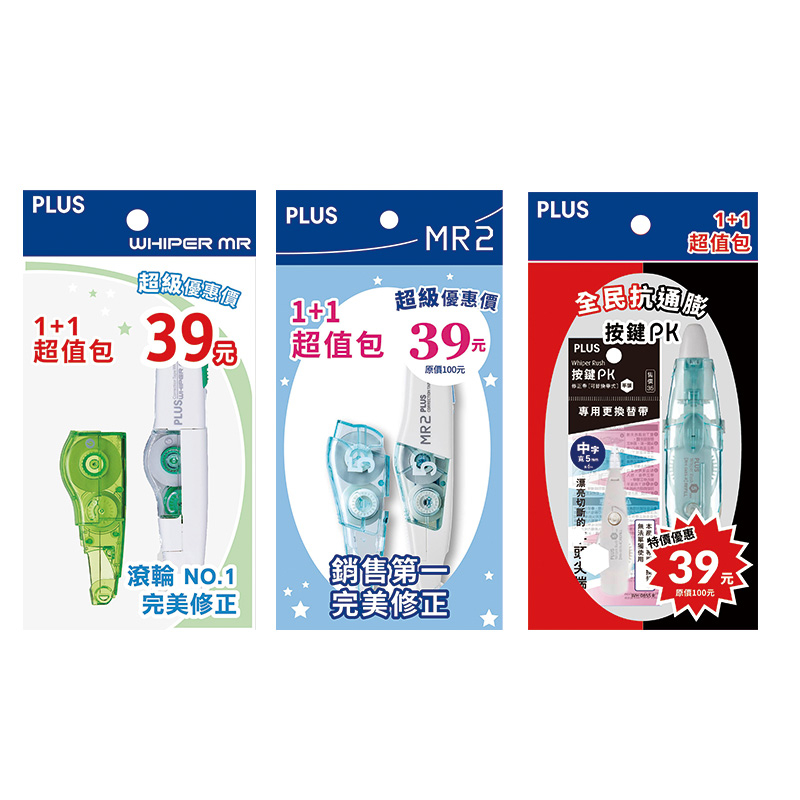 【PLUS 開學季促銷】 超值包 (MR正帶+替帶 / MR2正帶+替帶 / PK正帶+替帶)MR修正帶 (1正帶+1替帶)|MR2修正帶 (1正帶+1替帶)|PK修正帶 (1正帶+1替帶)Eraser & Correction SuppliesPLUS普樂士文具官方旗艦店