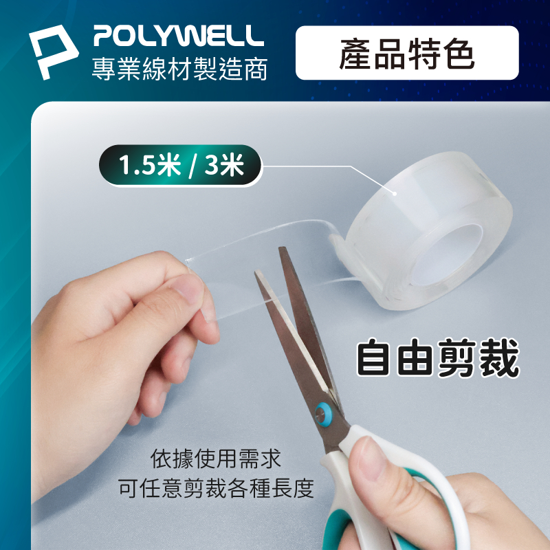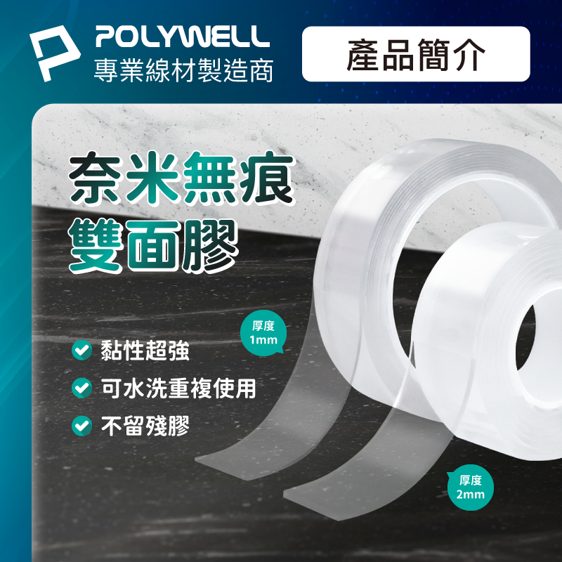 POLYWELL 奈米無痕強力雙面膠 透明萬用貼 可黏貼 可DIY自行裁切 適用於文具手工小物 寶利威爾 台灣現貨厚度1mm (寬度5公分),1.5米|厚度1mm (寬度5公分),3米|厚度2mm (寬度5公分),1.5米|厚度2mm (寬度5公分),3米|厚度1mm (寬度3公分),1.5米|厚度1mm (寬度3公分),3米|厚度2mm (寬度3公分),1.5米|厚度2mm (寬度3公分),3米Strings & TapesPOLYWELL寶利威爾官方旗艦店