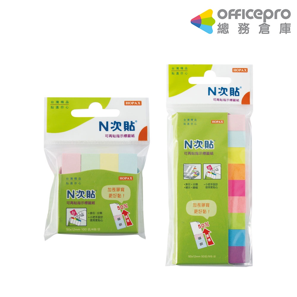 N次貼 4色粉彩指示標籤紙 9色螢光指示標籤紙 重點標記籤 螢光色彩書籤 多次黏貼|Officepro總務倉庫4色粉彩標籤紙/100張/4條/袋|9色螢光標籤紙/50張/9條/包Memo & Sticky NotesOfficepro總務倉庫 旗艦店
