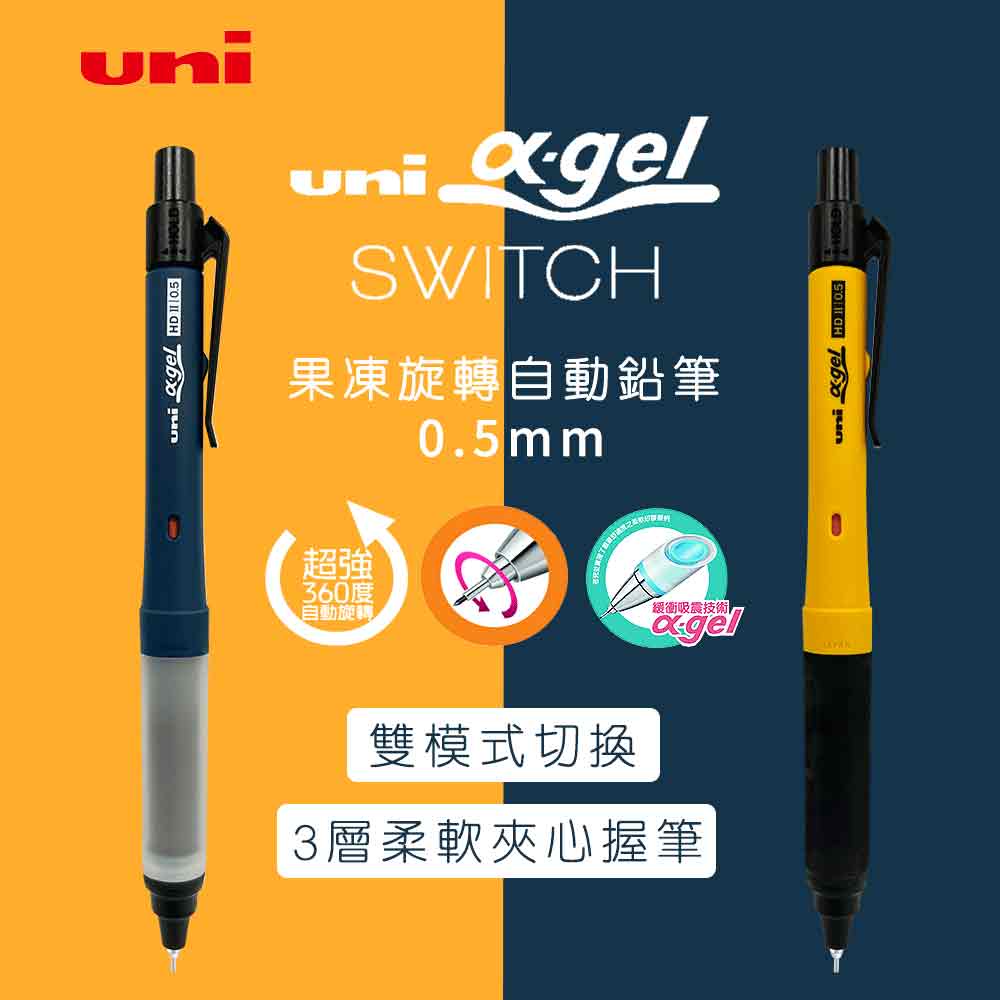 【日本文具】UNI三菱 Alpha Gel Switch M5-1009GG 0.5 果凍旋轉自動鉛筆 雙模式切換/現貨海軍藍|黑色|黃色|橄欖綠|UNI 2B筆芯+ MONO小橡皮擦組PencilsOffice24列印倉庫