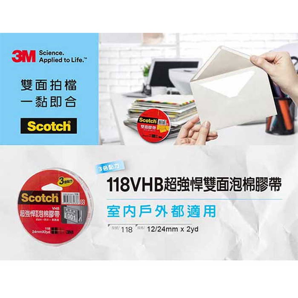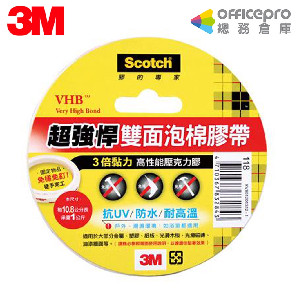 3M VHB超強悍雙面泡棉膠帶118 12mmx2Y/18mmx2Y/24mmx2Y 雙面膠 泡棉膠 強力泡棉膠12mmx2Y|18mmx2Y|24mmx2YStrings & TapesOfficepro總務倉庫 旗艦店