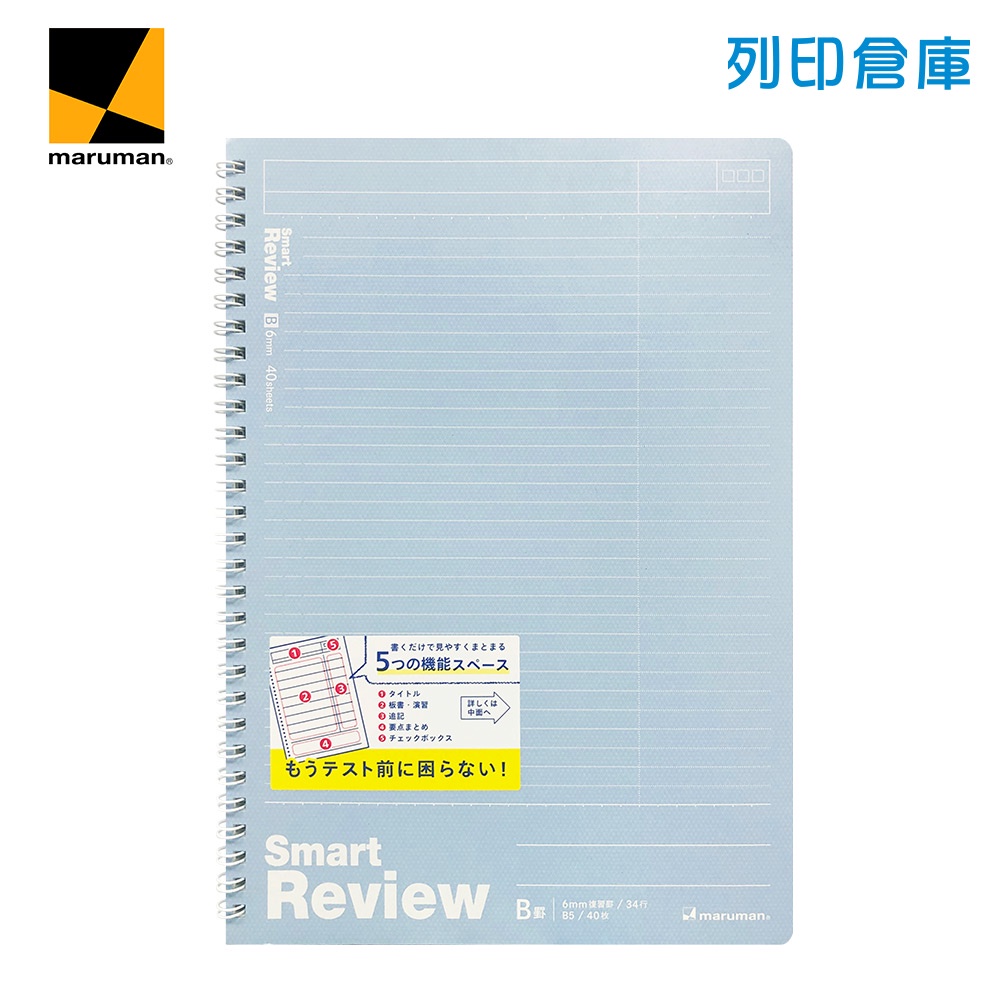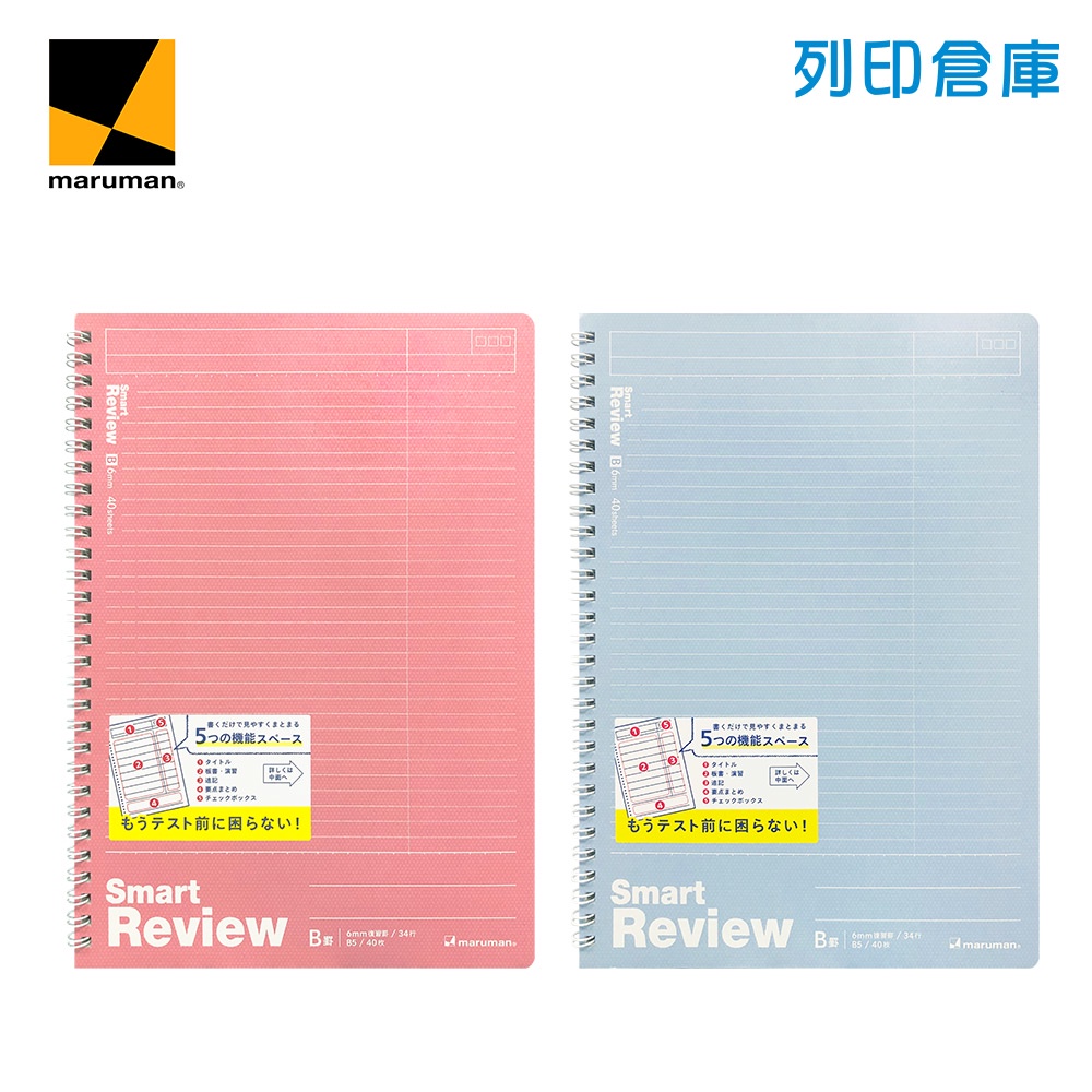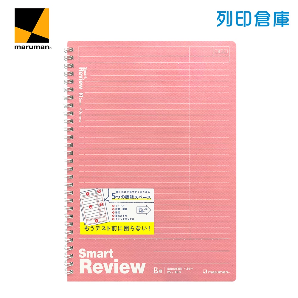 【日本文具】Maruman龍和 Smart Review B5/6mm橫線/40頁 聰明記憶學習筆記本 線圈筆記本/現貨N909A-08 粉紅色|N909A-52 淺藍色Notebooks & NotepadsOffice24列印倉庫