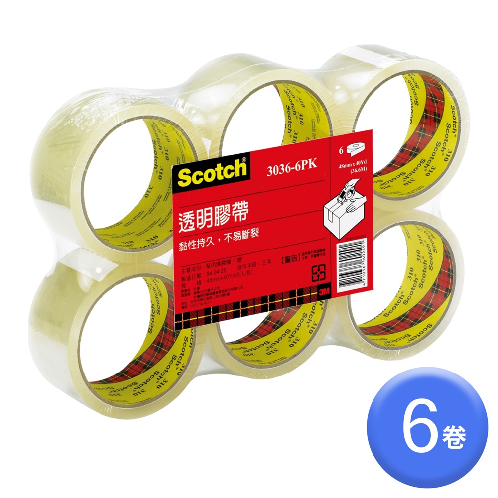3M 大管芯OPP透明封箱膠帶 (3036-6PK) 48mmx36M/48mmx82M/60mmx36M 6卷/束48mmx36M/6卷/束|48mmx82M/6卷/束|60mmx36M/6卷/束Strings & TapesOfficepro總務倉庫 旗艦店
