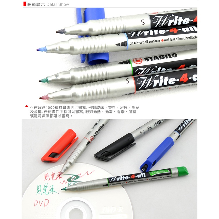 【STABILO思筆樂】 Write-4-all 萬能樂萬用油性記號筆 可書寫特殊材質表面 耐高溫筆跡清晰黑色/S(0.4mm)|藍色/S(0.4mm)|黑色/F(0.7mm)|藍色/F(0.7mm)|黑色/M(1.0mm)|藍色/M(1.0mm)Pens & InksSTABILO思筆樂 |官方旗艦店