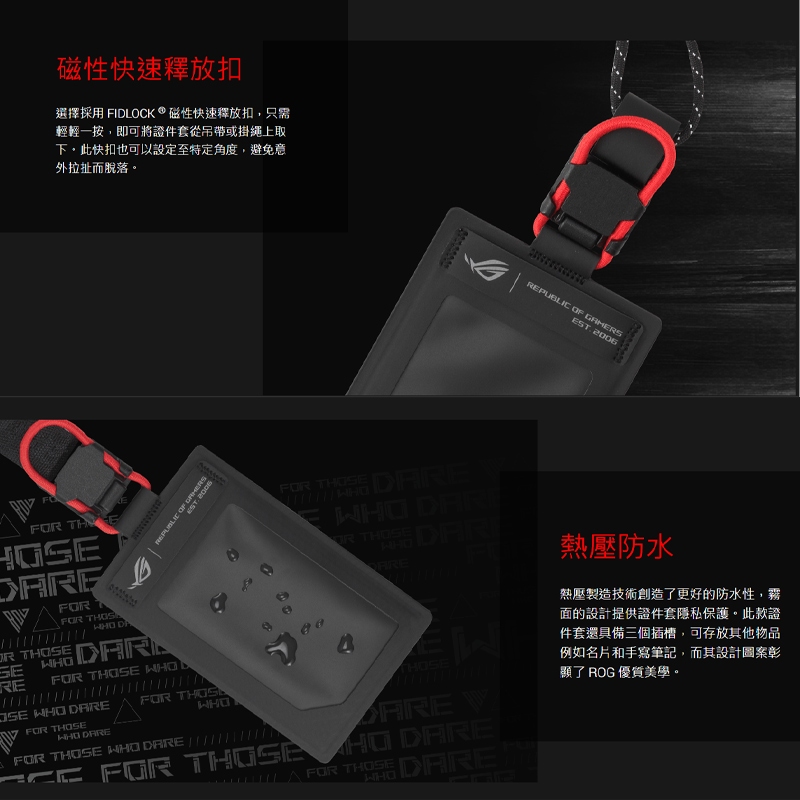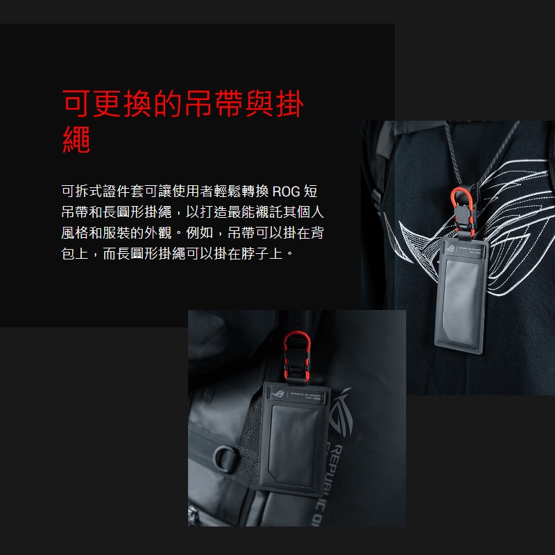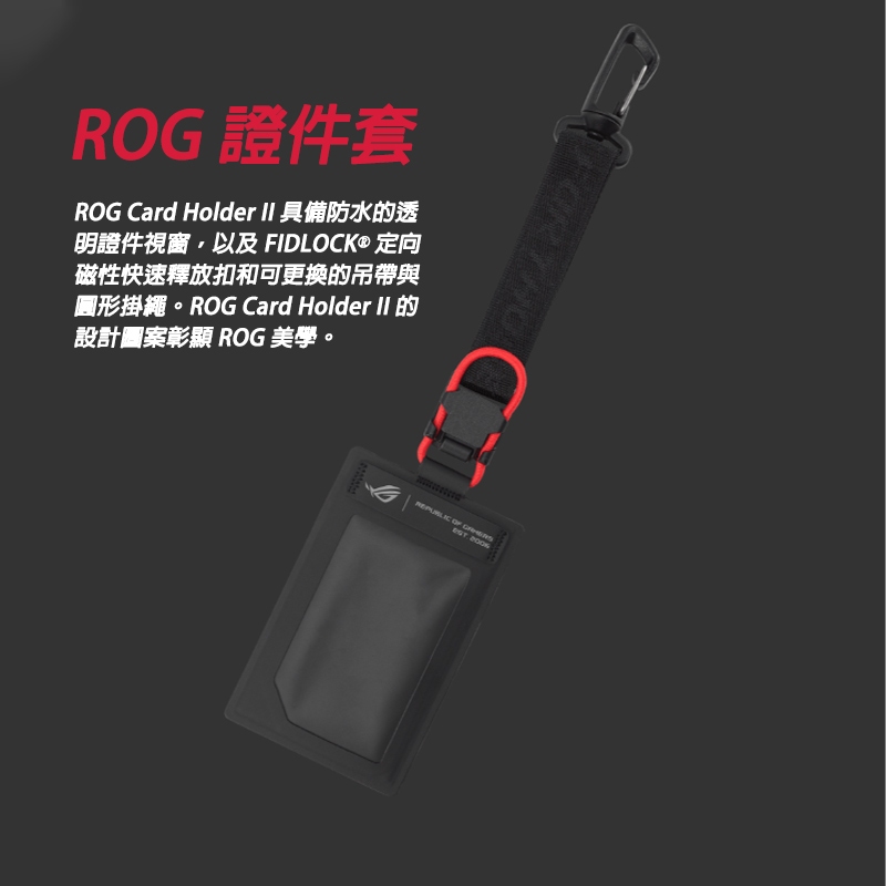 【品牌會員專屬】ROG CARD HOLDER II 證件套 磁性快速釋放扣/熱壓防水/可更換的吊帶與掛繩