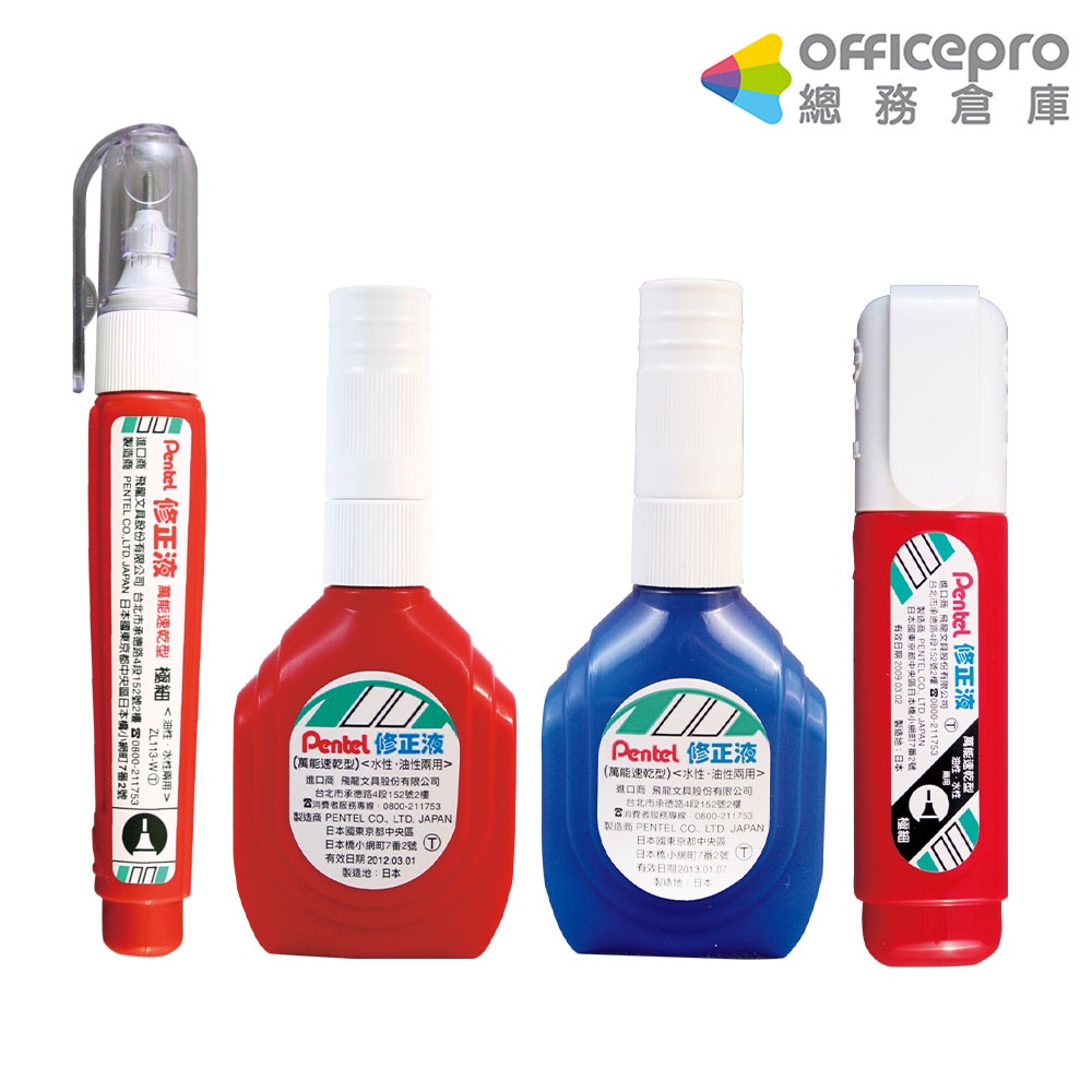 飛龍Pentel 紅瓶鋼針修正液 藍瓶修正液 速乾修正液 極細速乾修正液 紅瓶 藍瓶|Officepro總務倉庫紅瓶鋼針修正液 ZLC31-WTN|藍瓶修正液 ZL1-WTN|速乾修正液 ZLM1-WTN|極細速乾修正液 ZL-113WTEraser & Correction SuppliesOfficepro總務倉庫 旗艦店