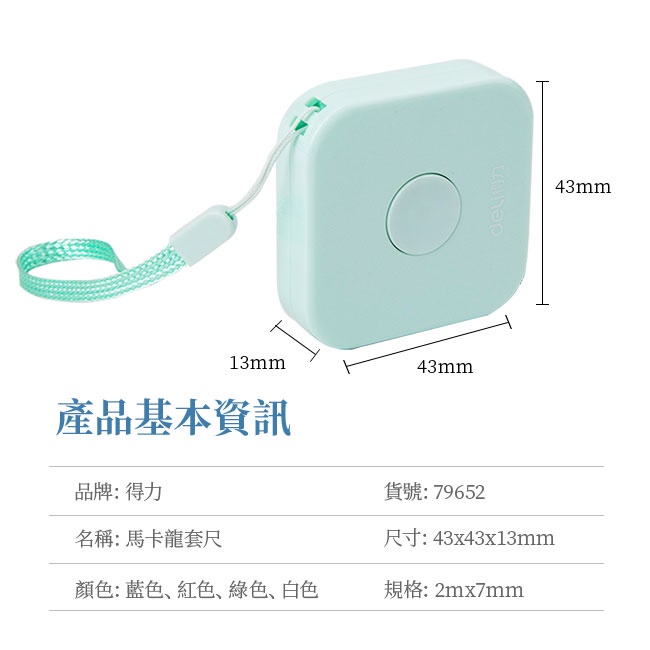 得力Deli 馬卡龍捲尺-混色出貨(79652) 捲尺 伸縮尺 尺寸測量 尺帶 捲尺得力Deli 馬卡龍捲尺-混色出貨(79652) 捲尺 伸縮尺 尺寸測量 尺帶 捲尺Rulers, Protractors & StencilsOfficepro總務倉庫 旗艦店
