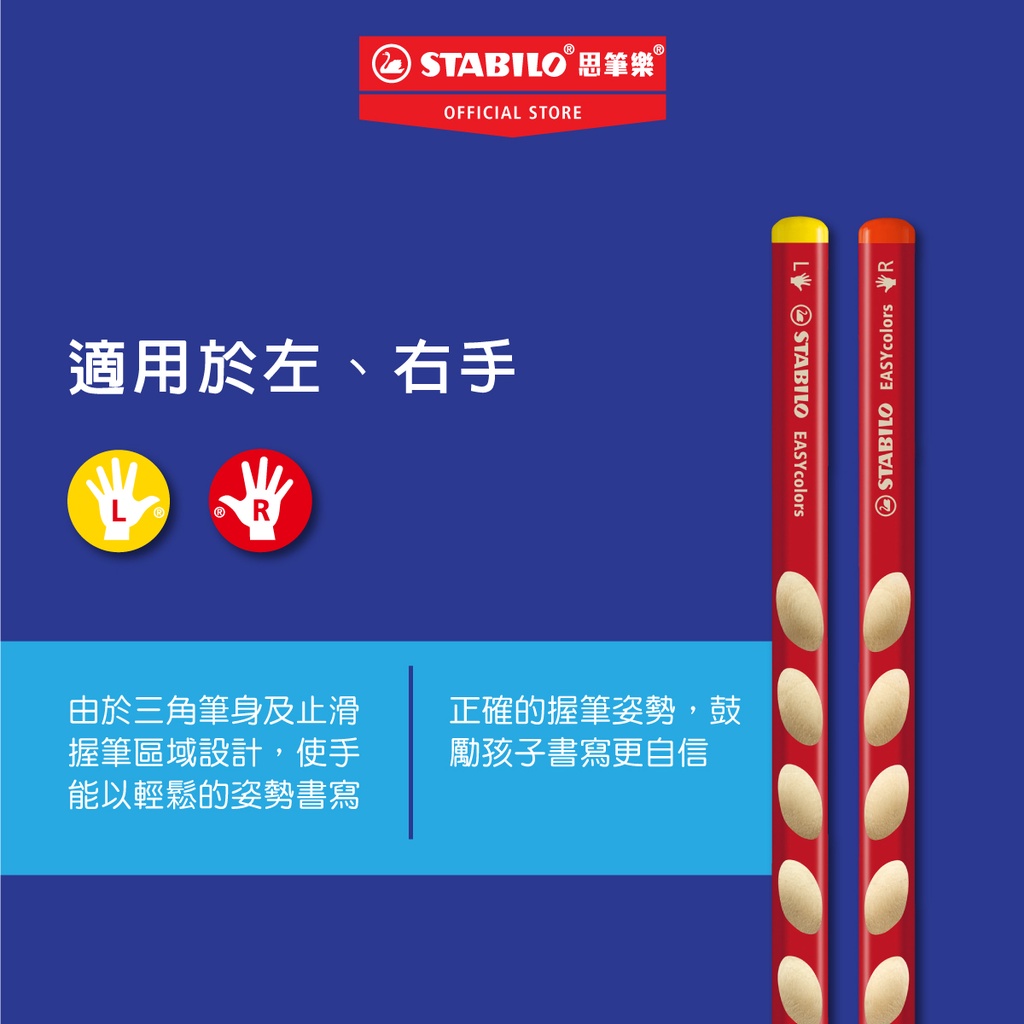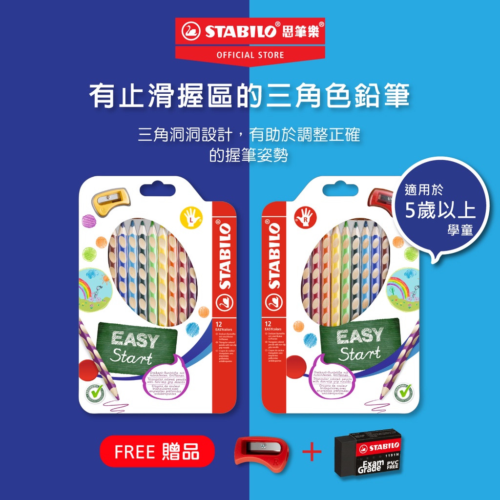 【STABILO思筆樂】EASYcolors 洞洞色鉛筆 加贈橡皮擦及專用削筆器 油性色鉛筆 粗三角色鉛(右手) 6色入+橡皮擦|(右手) 12色入+橡皮擦+削筆器|(左手) 6色入+橡皮擦|(左手) 12色入+橡皮擦+削筆器Color PencilsSTABILO思筆樂 |官方旗艦店
