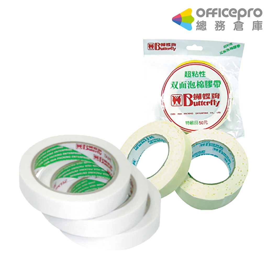 蝴蝶牌 雙面膠帶 雙面泡棉膠帶 大型DM黏貼膠帶 海報膠帶 辦公室膠帶 學校膠帶 紙張黏貼雙面膠帶 12mmx16M|雙面膠帶 12mmx10M|雙面膠帶 18mmx10M|雙面泡棉膠帶 48mmx3.5MStrings & TapesOfficepro總務倉庫 旗艦店
