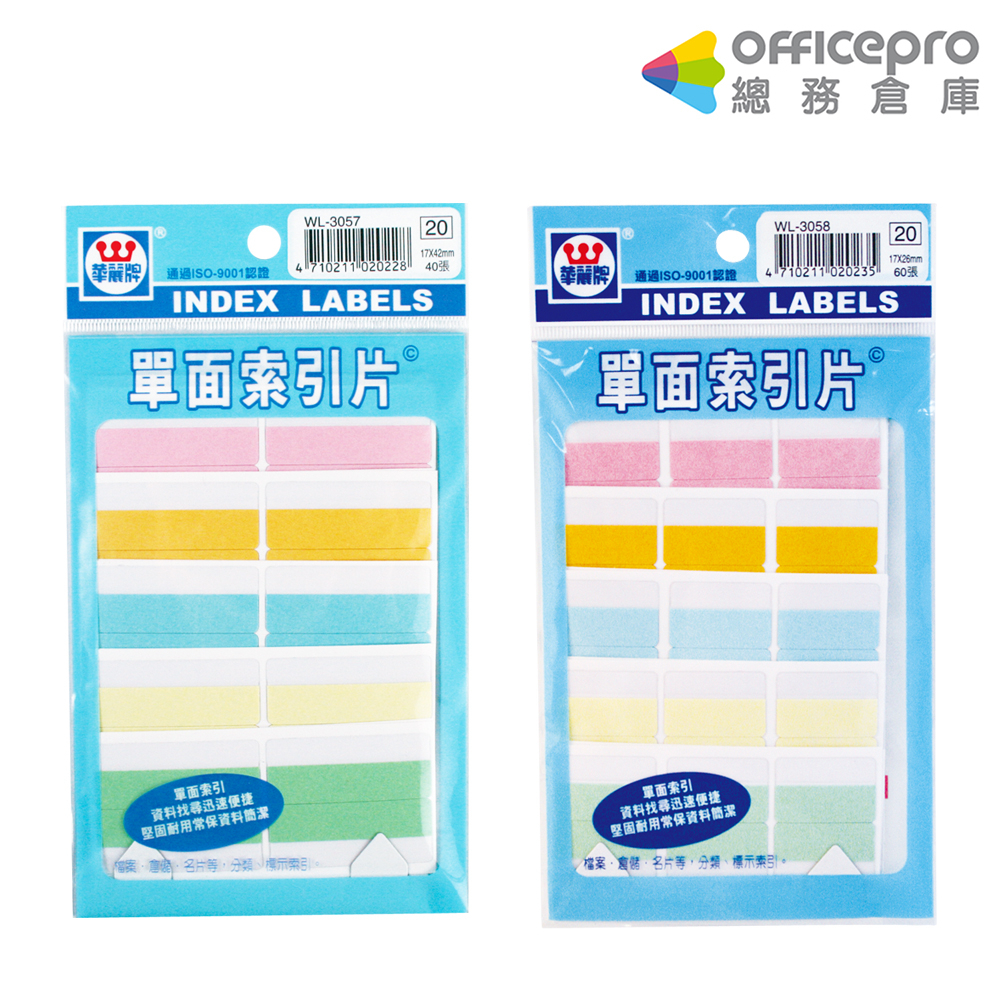 華麗牌5色單面索引片WL-3057/WL-3058/寬17x長42mm/40張/60張/包|Officepro總務倉庫WL-3057-17x42mm-40張|WL-3058-17x26mm-60張Labels & StickersOfficepro總務倉庫 旗艦店