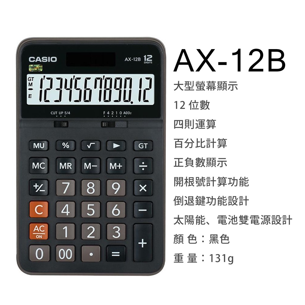 卡西歐CASIO 桌上型計算機 商用計算機 12位元|Officepro總務倉庫AX-120ST|AX-120B|AX-12BCalculatorsOfficepro總務倉庫 旗艦店