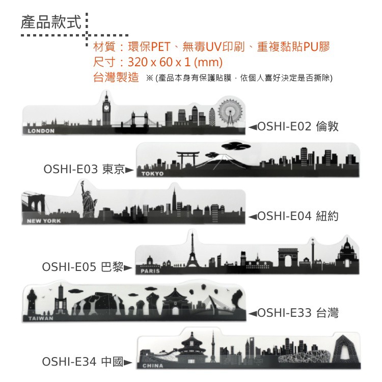 螢幕留言備忘板-城市剪影 螢幕留言板 留言卡 留言夾 記事板 標示夾 便條紙便利貼 夾心備忘板 歐士OSHI東京|紐約|巴黎|台灣|中國|倫敦Memo & Sticky NotesOSHI歐士