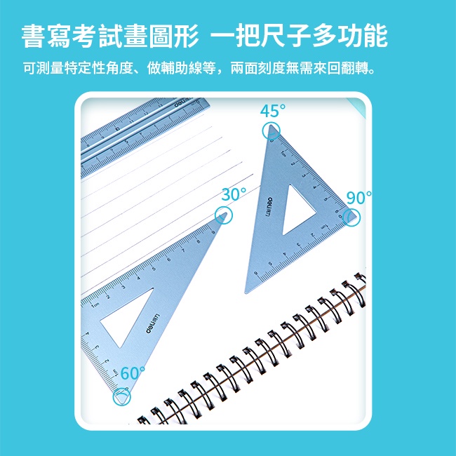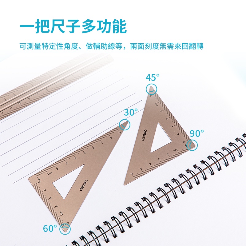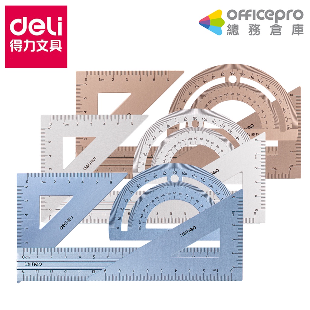 得力Deli 金屬套尺4件組-古銅/金屬藍/銀色(79532) 直尺 直角三角尺 等腰三角尺 量角器 量尺 尺寸測量組古銅|金屬藍|銀色Rulers, Protractors & StencilsOfficepro總務倉庫 旗艦店