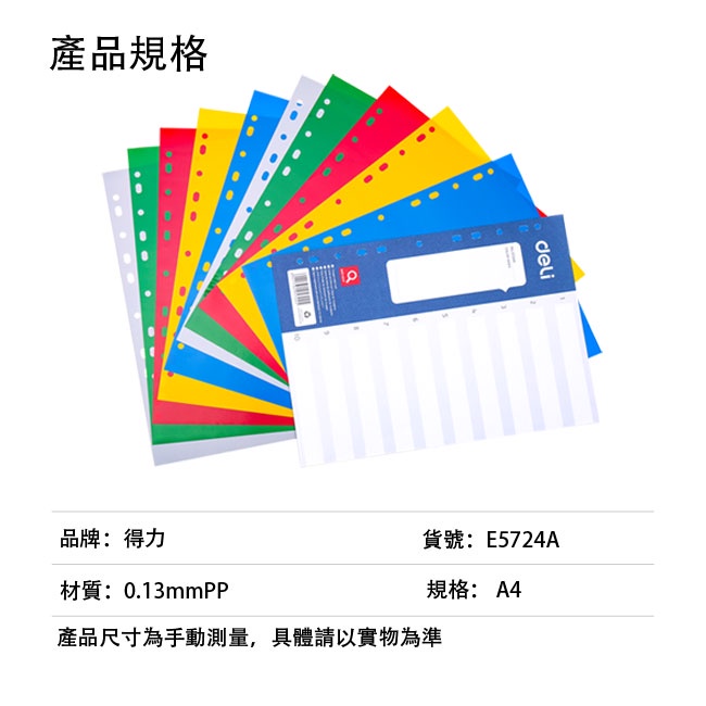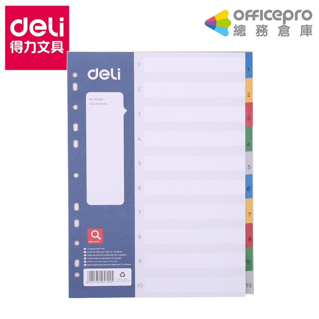 得力Deli PP隔頁紙 A4/數字1~10/5724A 隔頁紙 分類隔夜 月份分隔頁 數字隔頁 數字分類 筆記本得力Deli PP隔頁紙 A4/數字1~10/5724A 隔頁紙 分類隔夜 月份分隔頁 數字隔頁 數字分類 筆記本Loose LeafOfficepro總務倉庫 旗艦店