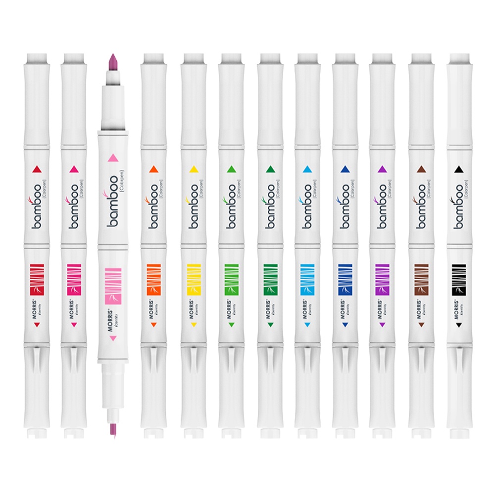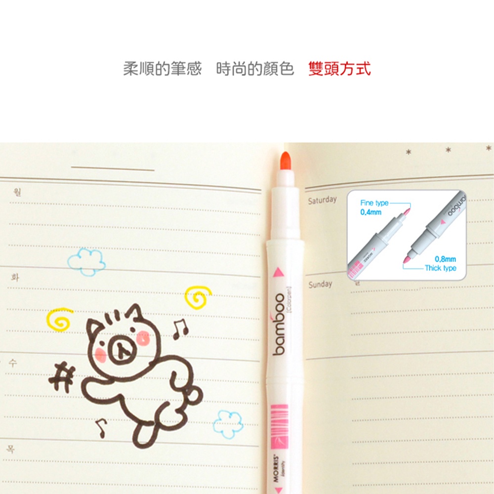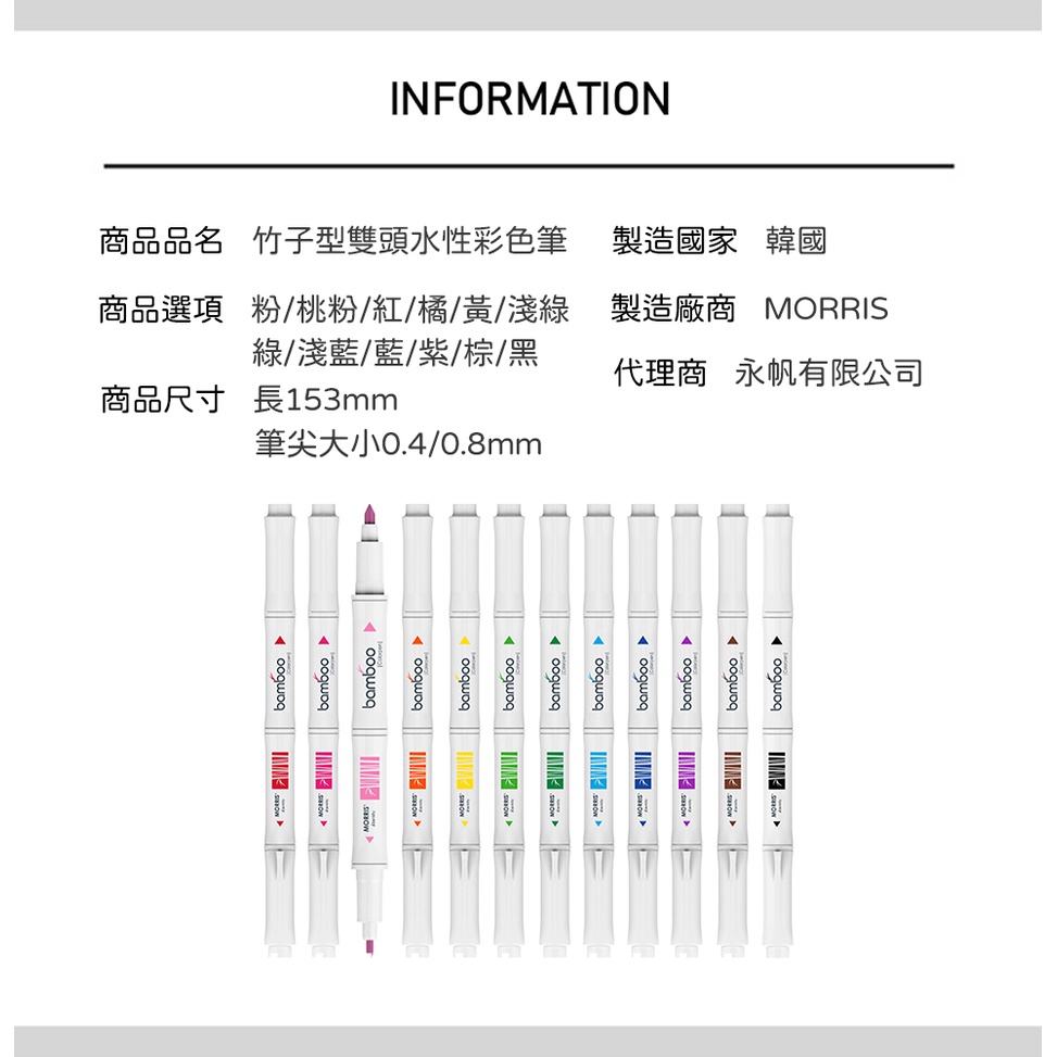 【MORRIS 官方旗艦店】竹子型雙頭水性彩色筆(0.4 / 0.8mm_12色)|Bamboo系列 畫筆 韓國製綠色|藍色|紫色|淺綠色|桃粉色|紅色|橘色|黃色|淺藍色|棕色|黑色|粉色Paint BrushesMorris Taiwan 官方旗艦店