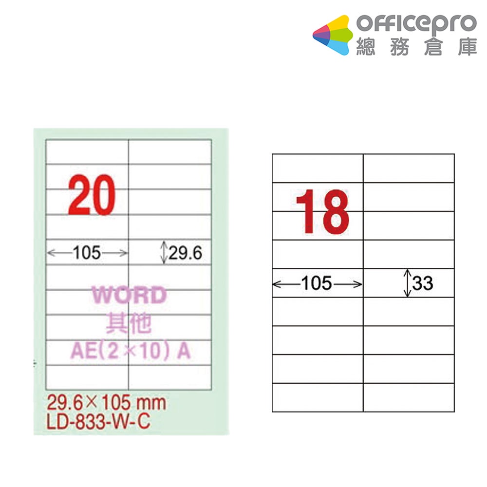 龍德三用列印電腦標籤 LD-841 LD-833 A4白色 18/20格 20張/包|Officepro總務倉庫LD-841-W-C 18格/包|LD-833-W-C 20格/包Labels & StickersOfficepro總務倉庫 旗艦店