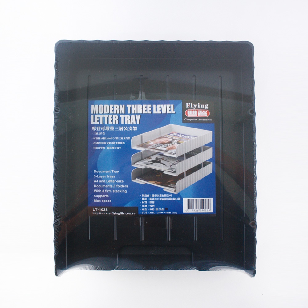 雙鶖Flying 摩登可堆疊三層公文架 A4書架 文件收納 LT-1028 黑|Officepro總務倉庫