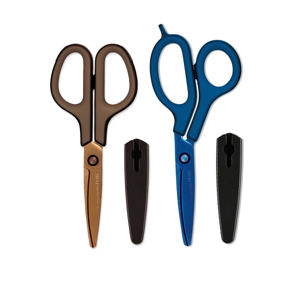 【PLUS】鈦金屬弧線剪刀 (鈦) [折扣碼現折]藍|褐ScissorsPLUS普樂士文具官方旗艦店