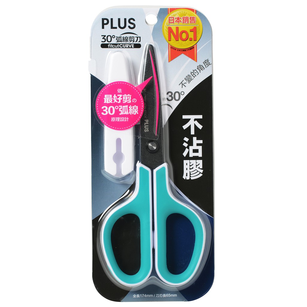 【PLUS】 30度弧線剪刀(不沾膠附蓋) [折扣碼現折]34-763 藍|34-765 粉|34-515 灰ScissorsPLUS普樂士文具官方旗艦店