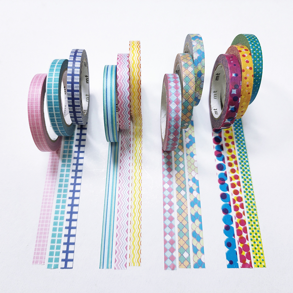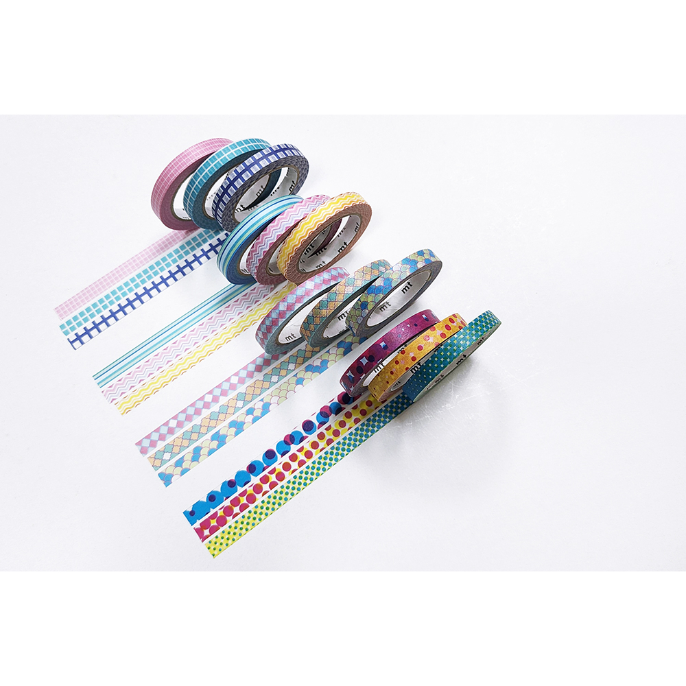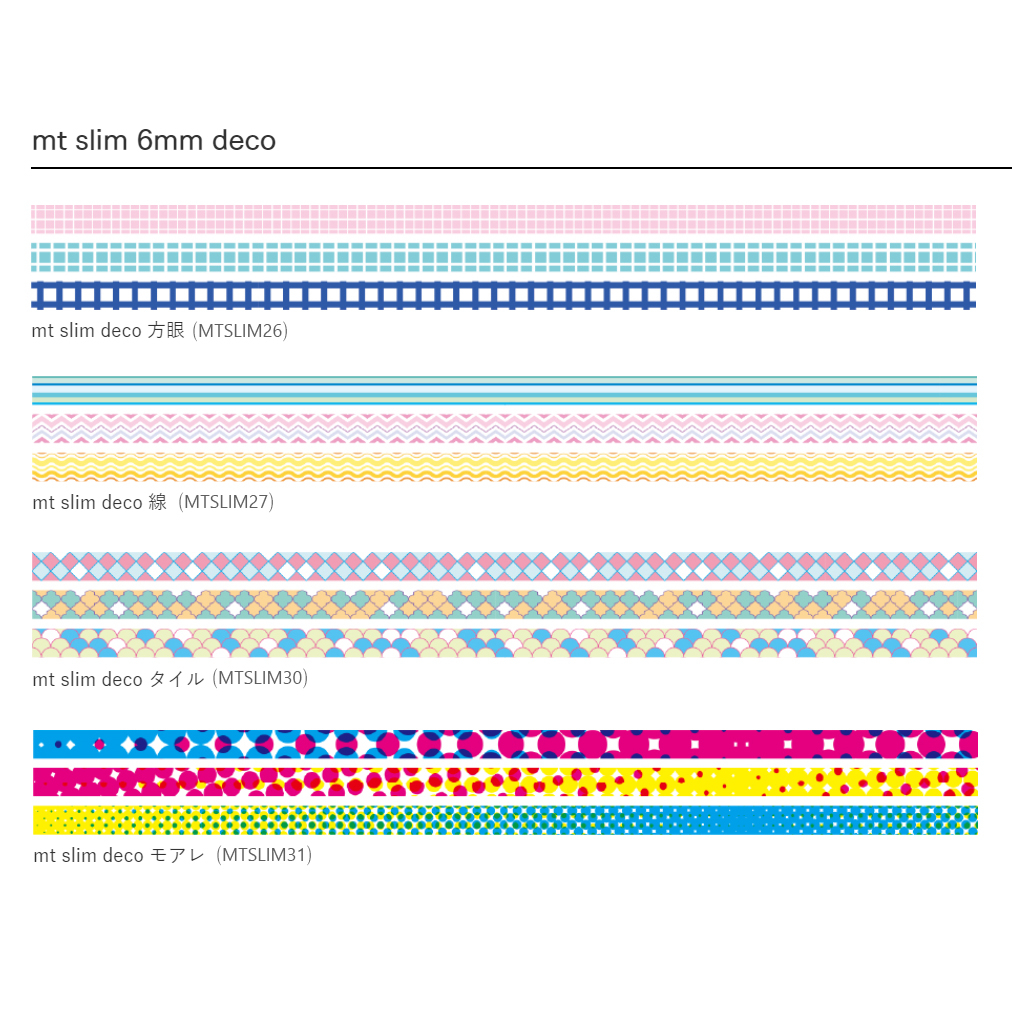 mt slim deco 6mm (MTSLIM26 – MTSLIM31) / 3捲一組 / 2023 Summer方眼 (MTSLIM26)|線 (MTSLIM27)|磚 (MTSLIM30)|摩爾波紋 (MTSLIM31)Strings & TapesQmono紙趣文房具