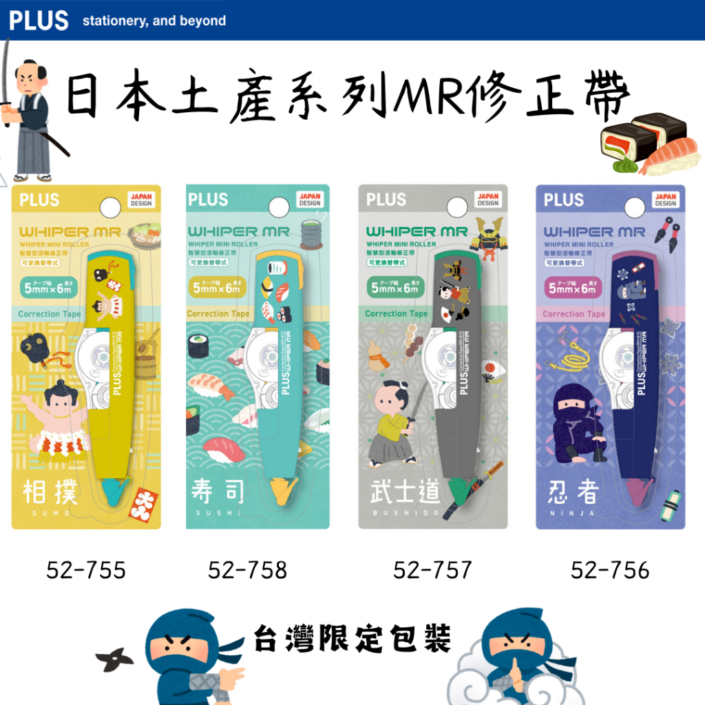 【PLUS】WH-615-J 限量MR滾輪修正帶-日本土產系列-相撲/忍者/武士道/壽司52-758 壽司|52-755 相撲|52-757 武士道|52-756 忍者Eraser & Correction SuppliesPLUS普樂士文具官方旗艦店