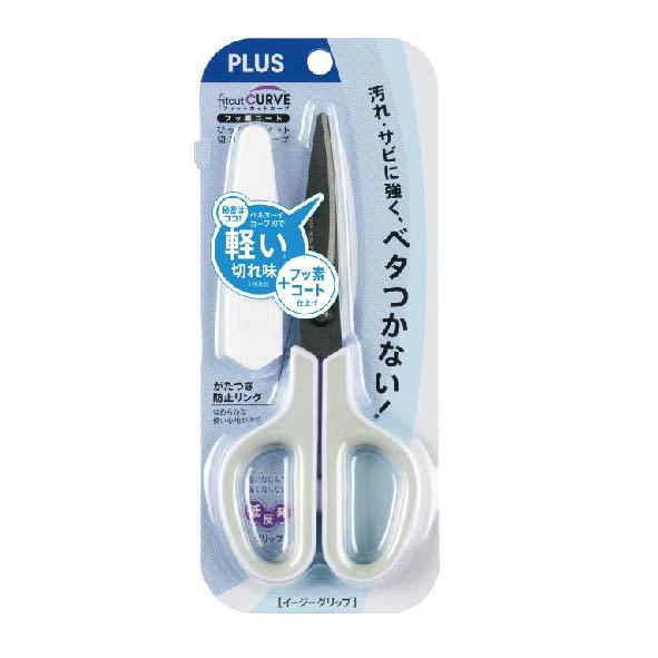 【PLUS】 30度弧線剪刀(不沾膠附蓋) [折扣碼現折]