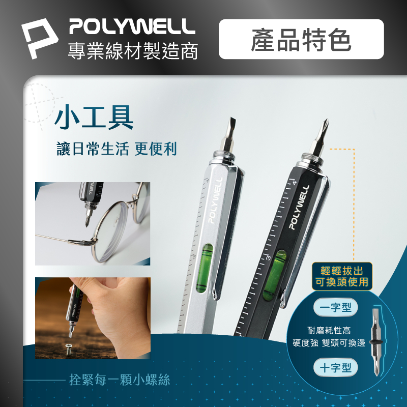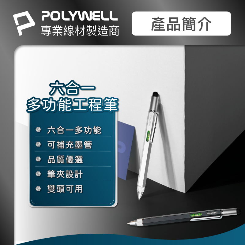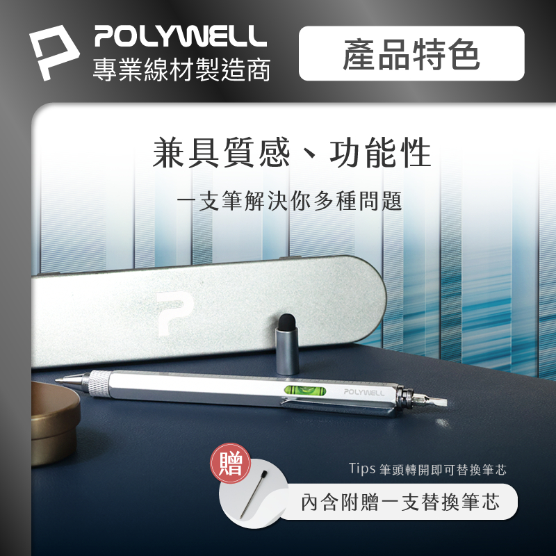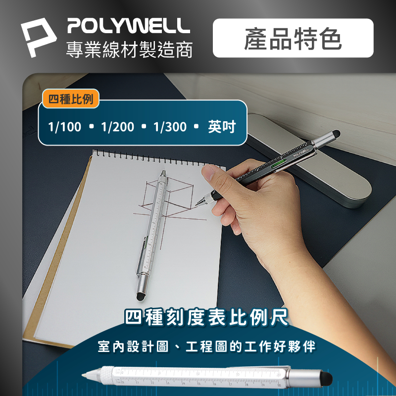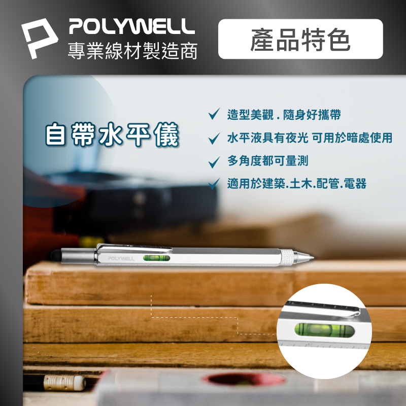 POLYWELL 六合一製圖工程筆 筆芯可替換 觸控筆 水平儀 刻度表 螺絲起子 多功能工具筆 寶利威爾 台灣現貨銀色筆+銀色鐵盒|黑色筆+金色鐵盒Pens & InksPOLYWELL寶利威爾官方旗艦店