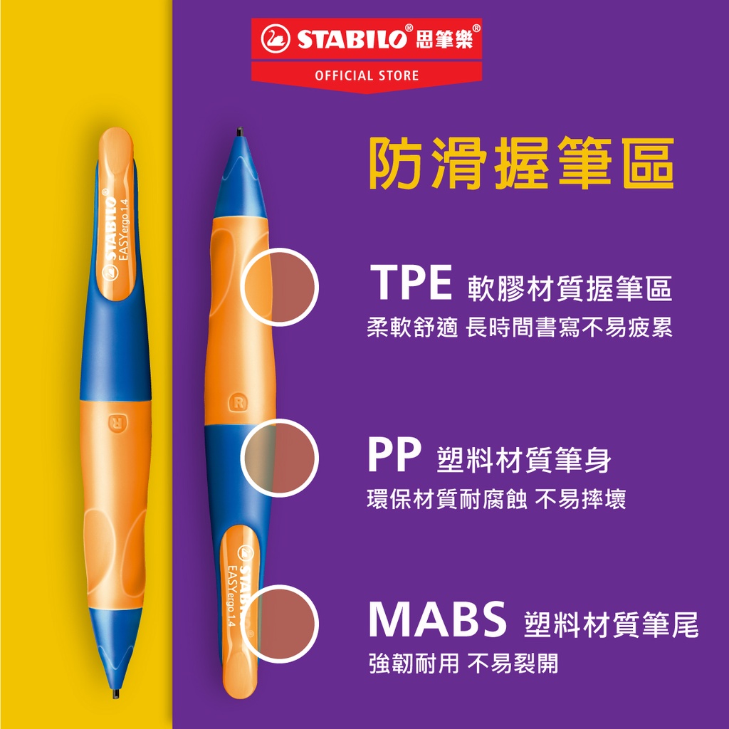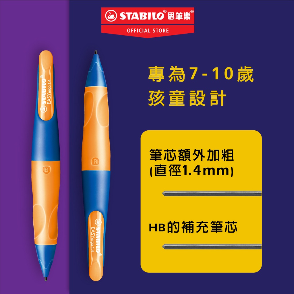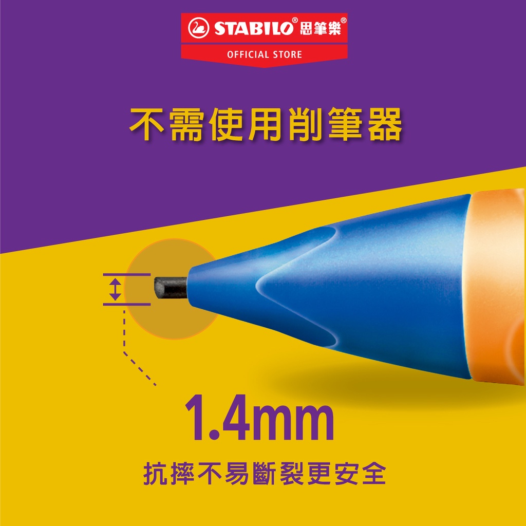 【STABILO思筆樂】 EASYergo 1.4mm胖胖鉛 粗自動鉛筆 學習筆 正確握筆 HB 左/右手適用 人體工學OPP袋裝(左手)粉紅 / 淡紫-單支|OPP袋裝(左手)淺綠 / 深綠-單支|(右手)紫色 / 霓虹黃-單支|(右手)松石綠 / 淺粉-單支|(右手)萊姆綠 / 海水藍-單支|(右手)群青 / 霓虹橙-單支|OPP袋裝(左手)群青 / 霓虹橙-單支|OPP袋裝(左手)松石綠/淺粉-單支|(右手)紫色霓虹黃+筆芯+彩色無毒塑膠|(右手)松石綠淺粉+筆芯+彩色無毒塑膠擦|(右手)群青霓虹橙+筆芯+彩色無毒塑膠擦|(左手)群青霓虹橙+筆芯+彩色無毒塑膠擦|(右手)萊姆綠淺藍+筆芯+彩色無毒塑膠擦|(左手)松石綠淺粉+筆芯+彩色無毒塑膠擦|(左手)松石綠 / 淺粉-單支|(左手)群青 / 霓虹橙-單支|1.4mm筆芯(6入)|OPP袋裝(右手)群青 / 霓虹橙-單支PencilsSTABILO思筆樂 |官方旗艦店
