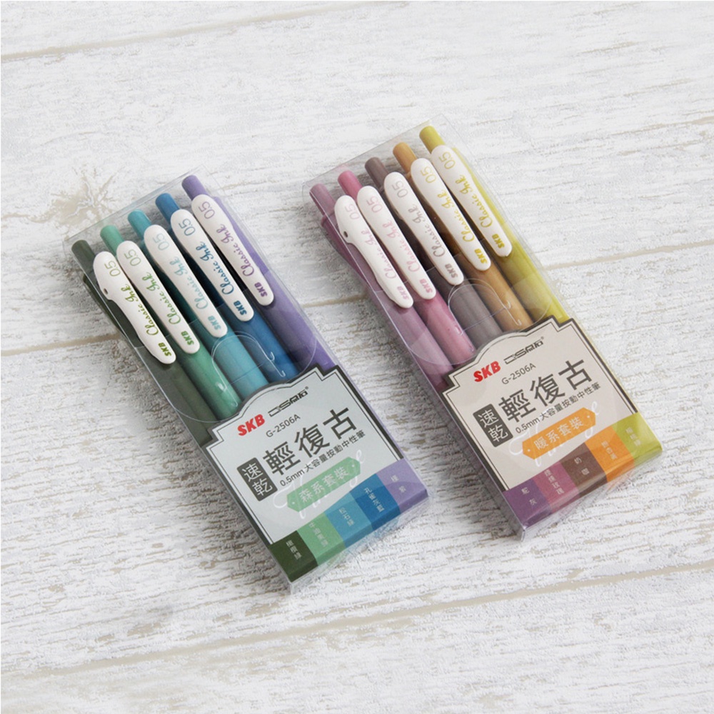 文明SKB 復古色速乾按動中性筆 G-2506 0.5mm 復古色中性筆|Officepro總務倉庫黛綠/支|勃艮第紅/支|深海藍/支|焦糖棕/支|經典黑/支|霧霾藍/支Pens & InksOfficepro總務倉庫 旗艦店