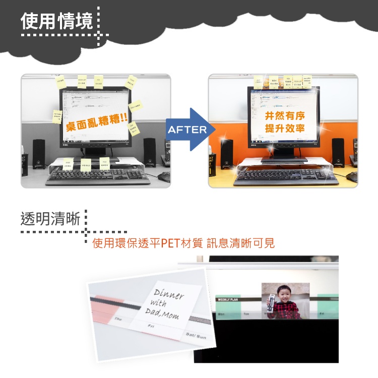 螢幕留言備忘板-週計畫 螢幕留言板 留言卡 留言夾 記事板 標示夾 便條紙便利貼 夾心備忘板 OSHI歐士